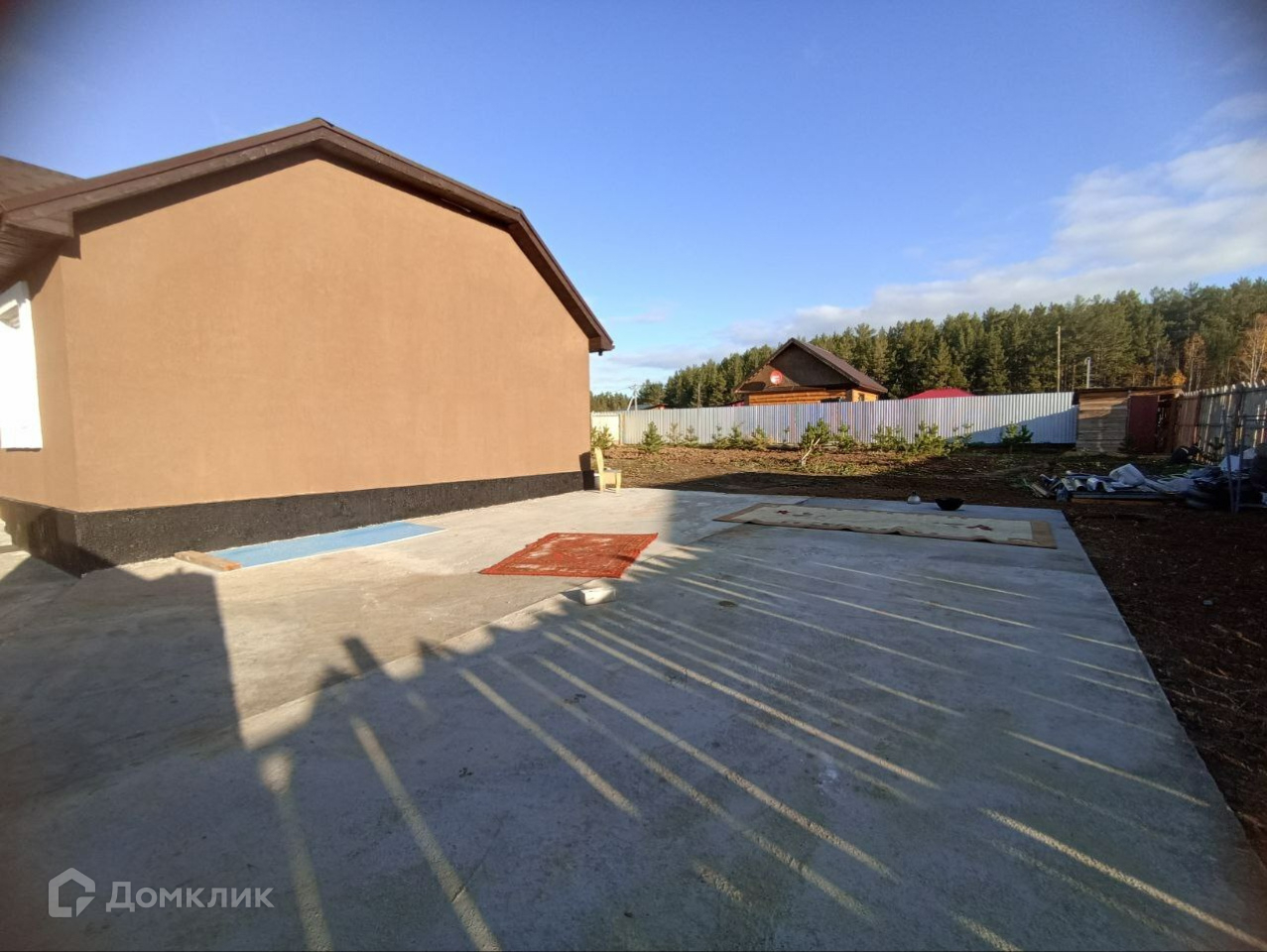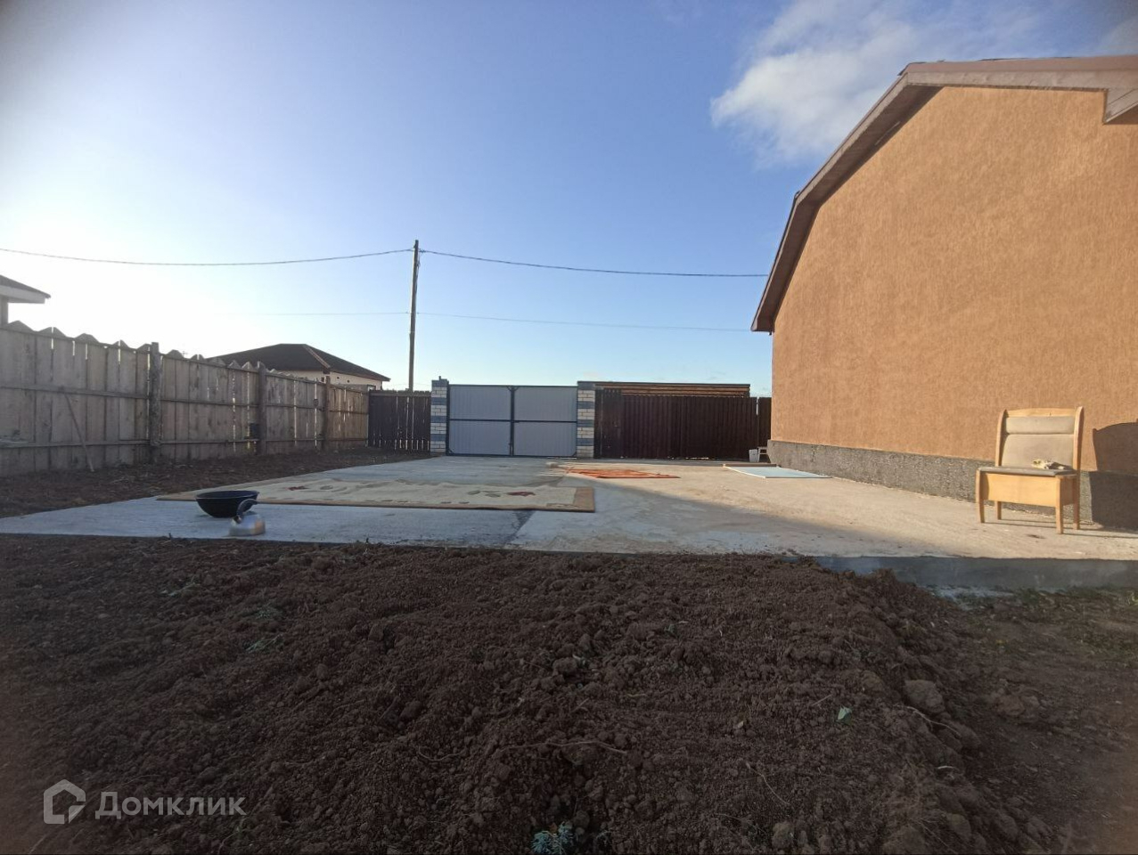Калитка, ворота под автомобиль, перед домом сделана бетоная площадка.