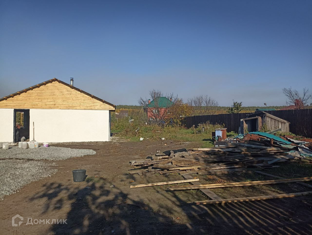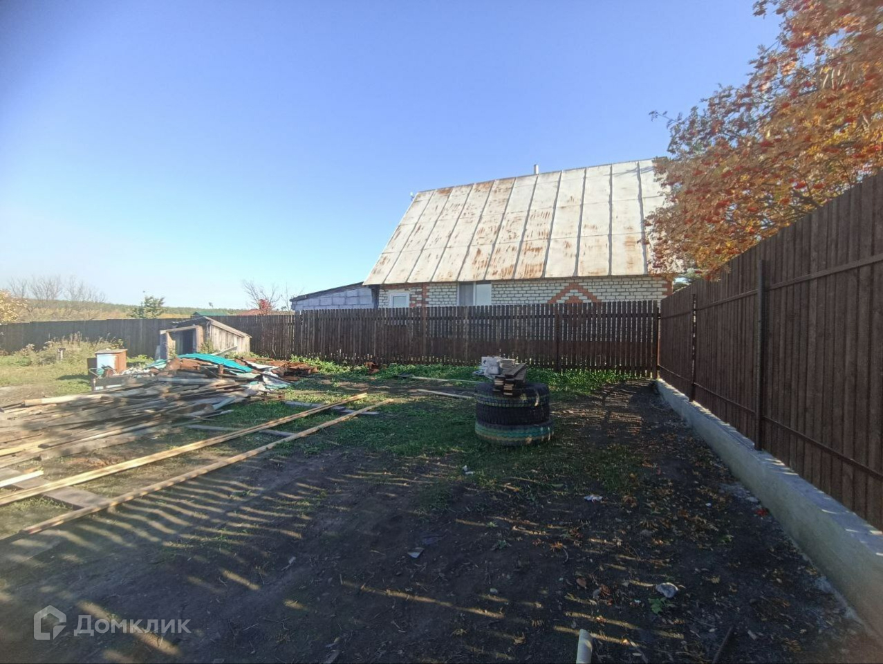 Участок огорожен забором по периметру.