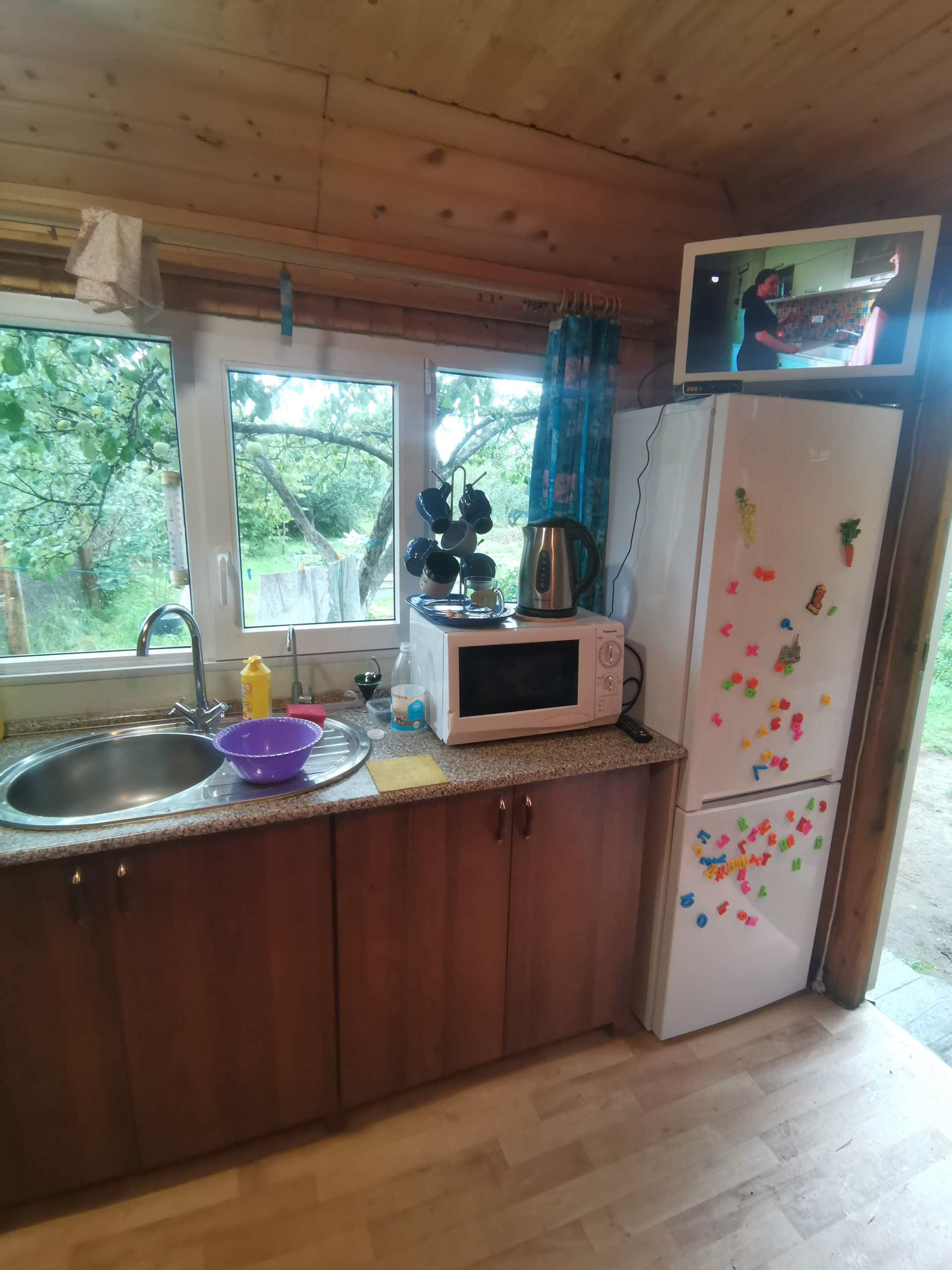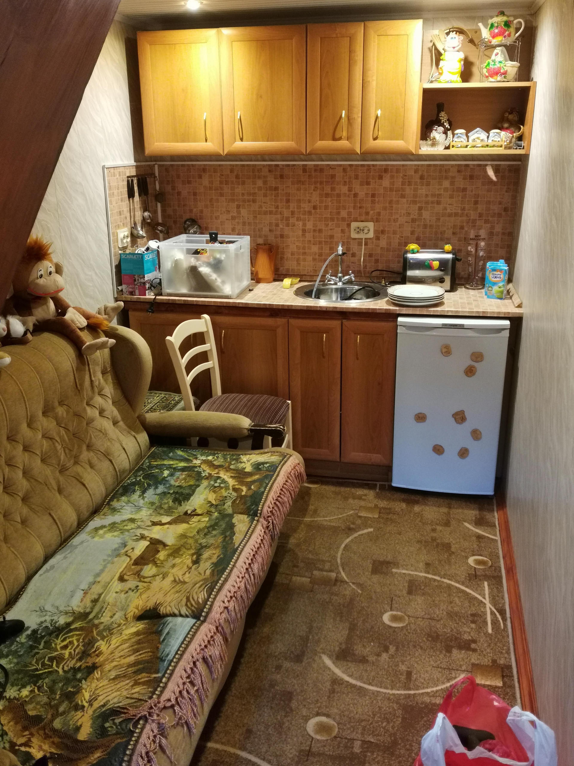 Предлагаем купить теплый трехэтажный кирпичный коттедж с жилой площадью 100 кв. м. для круглогодичного проживания дружной семьи, предпочитающей уют и свободу или для креакла скрывающегося от суровой реальности. На первом этаже – просторный гараж, помещения для хранения, кухня. На втором этаже – две спальни и общая комната с дивном и печкой обогревающей все помещения, в каждой комнате установлены дополнительные электрические радиаторы. На третьем этаже два просторных помещения для отдыха и 3 кладовки.