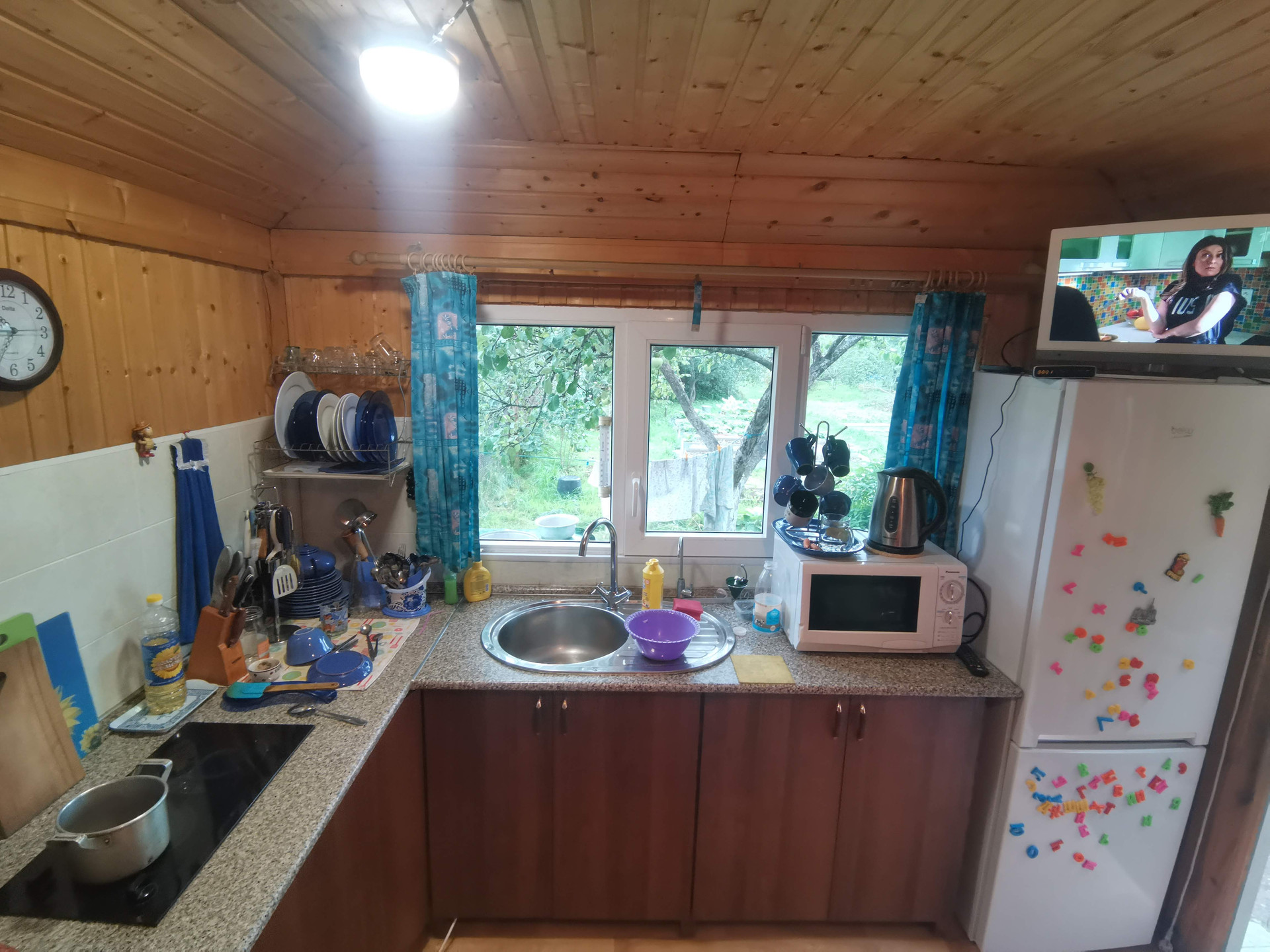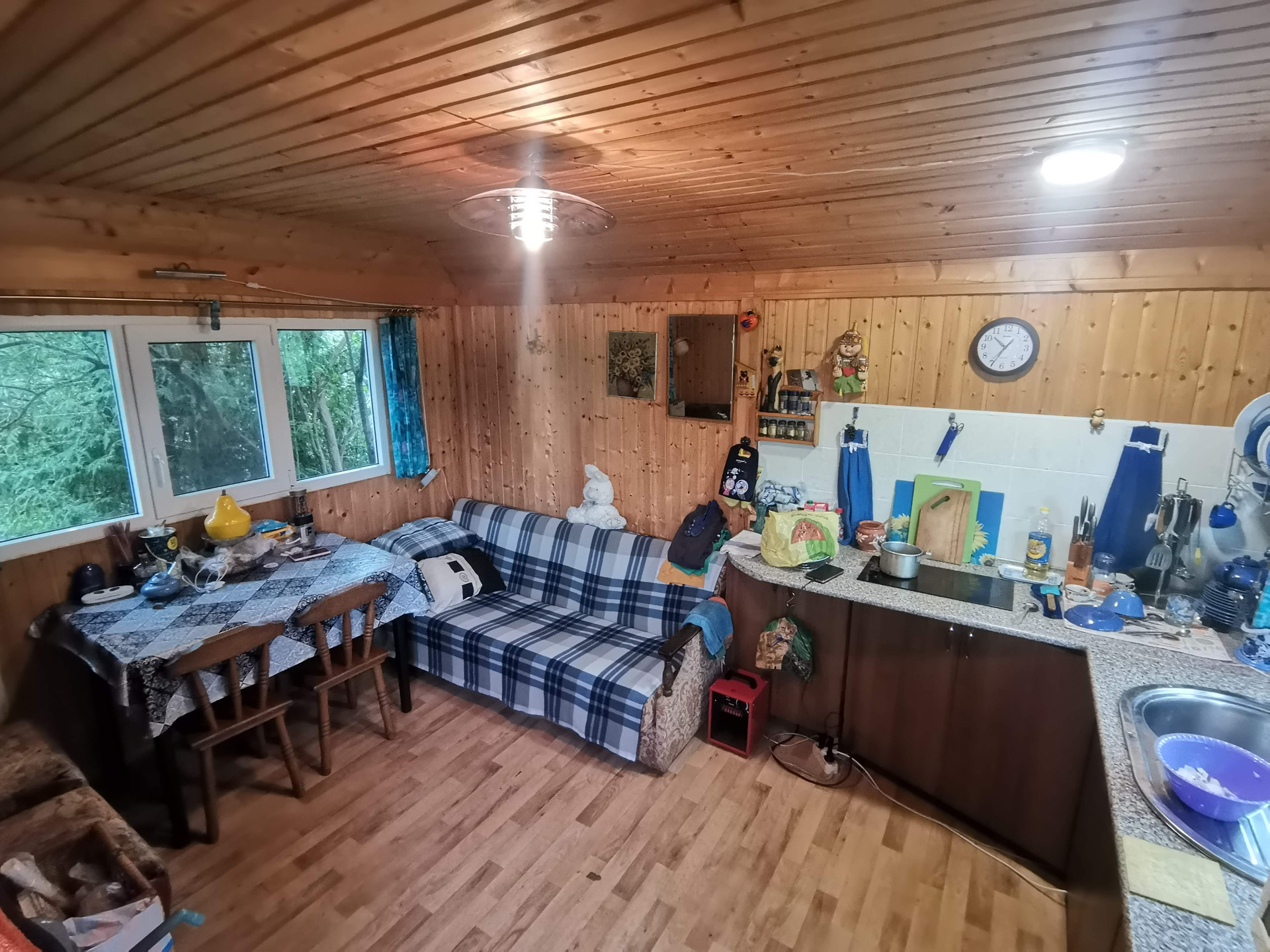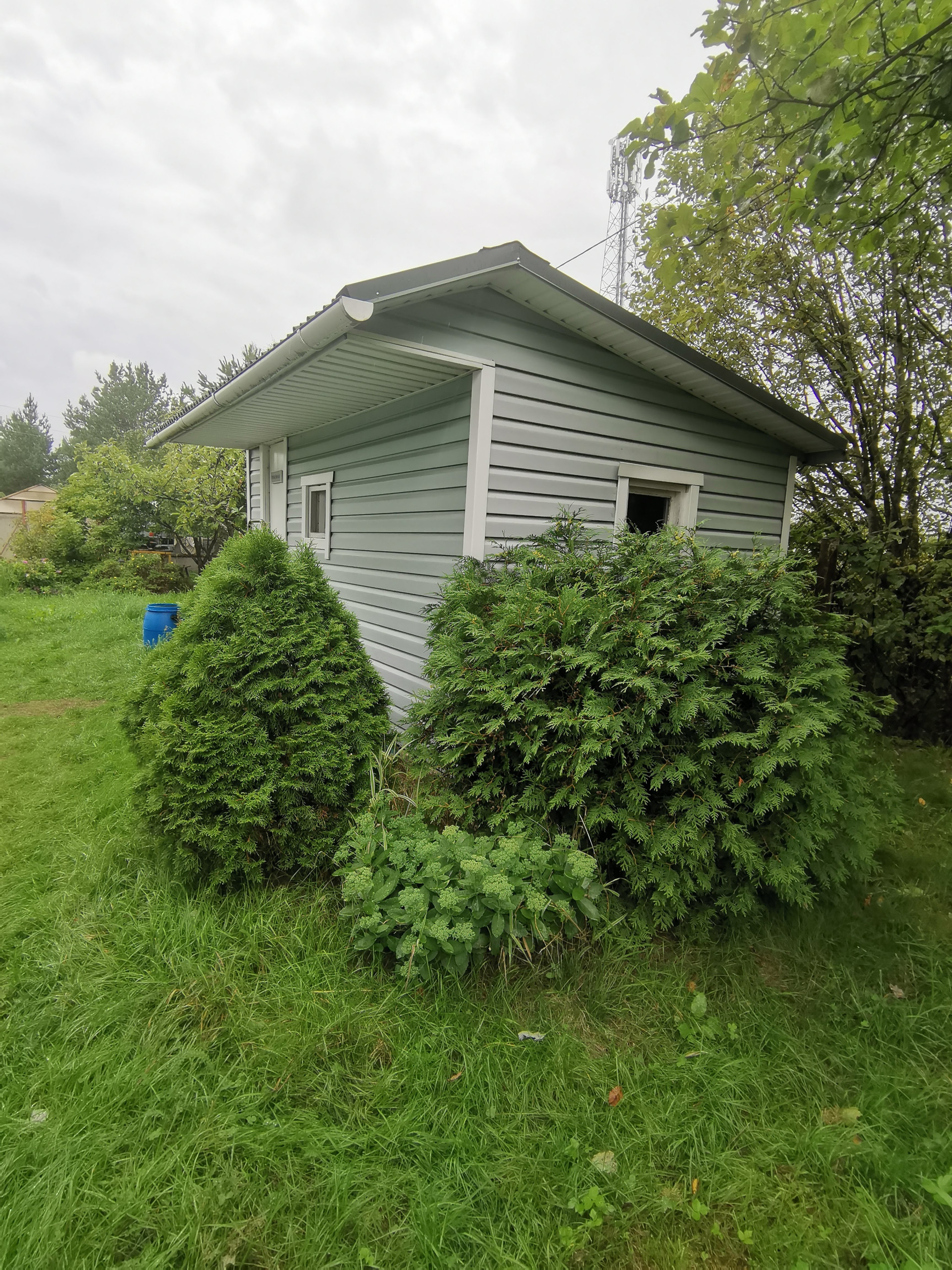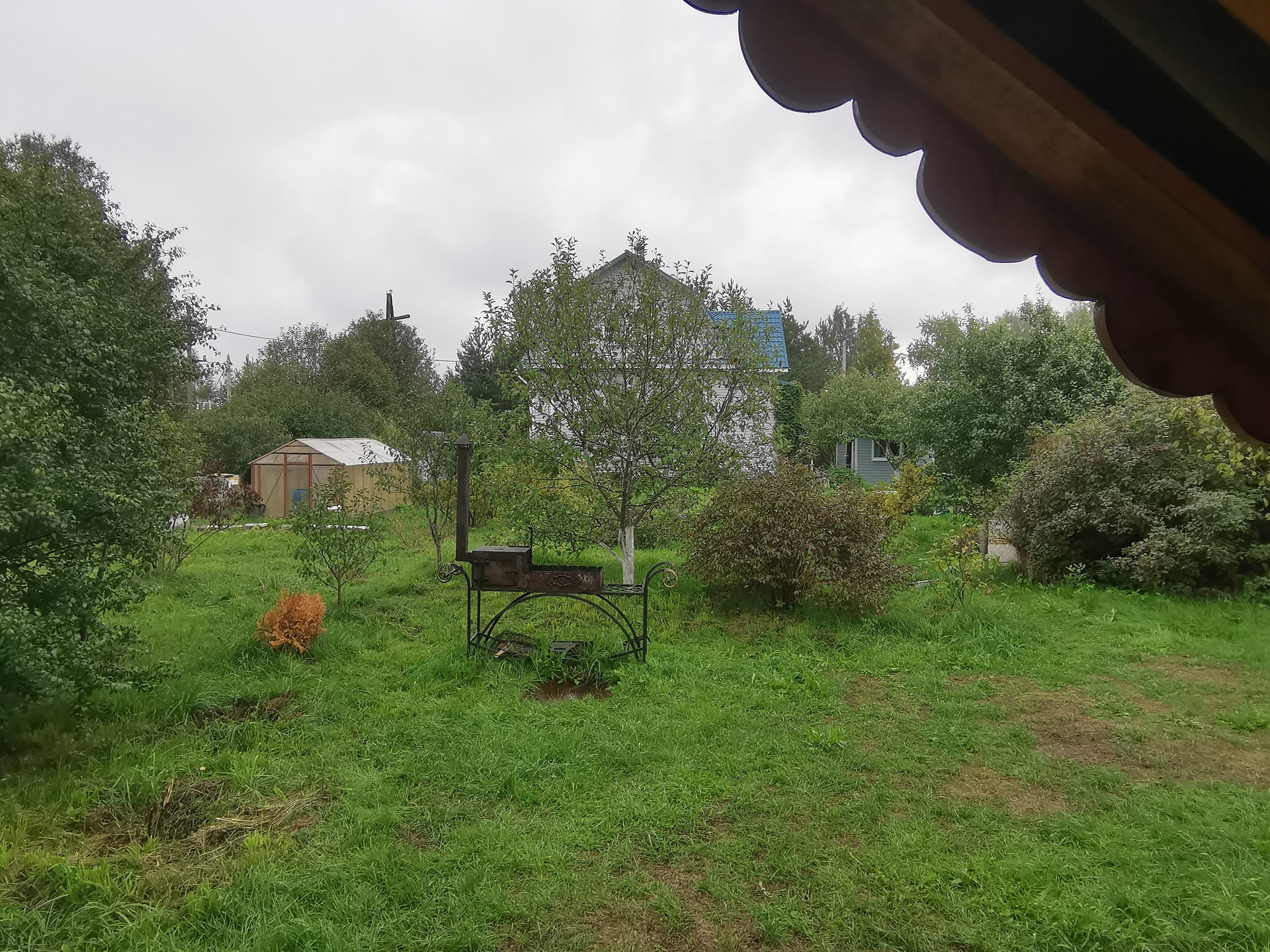 Перед входом – парковка для автомобиля. Участок – 12 соток, есть зона для барбекю, летня кухня, баня, беседка, колодец, бетонный погреб способный не только хранить ваши запасы но и выдержать прямое попадание ядерного боеприпаса малой мощности.