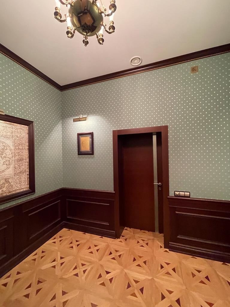 На втором этаже спальная комната с санузлом и балконом, 2 спальные комнаты, большой санузел с джакузи и душевой кабиной, туалетом и беде, вместительный кабинет. Подогрев полов во всех ванных комнатах.По периметру всего второго этажа пол - паркет.