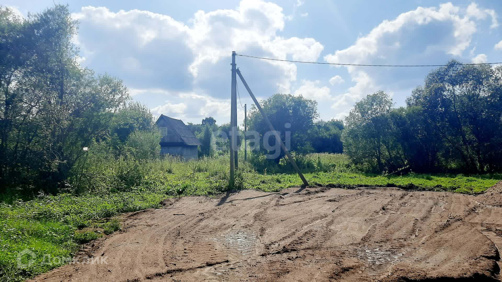 Электрический столб на участке, прекрасный подъезд.