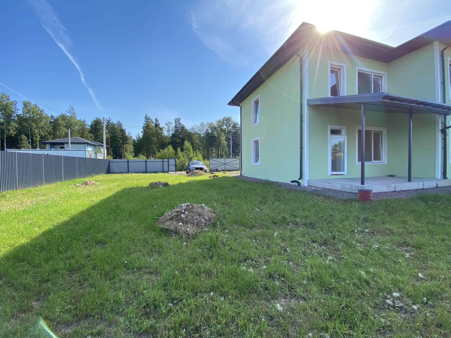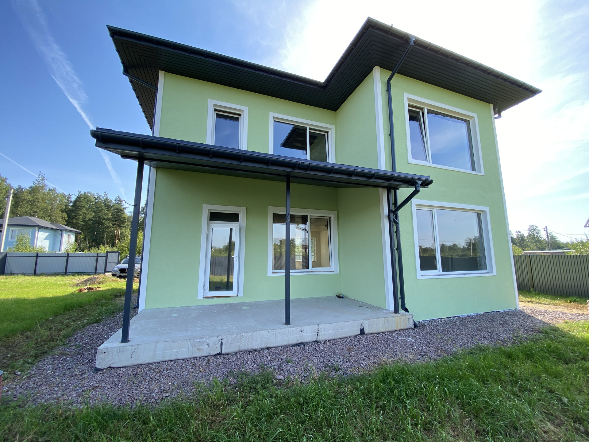 Продается загородный двухэтажный Дом общей площадью 204 кв.м. во Всеволожском районе ЛО, 28км от КАД, 30км от Мега Дыбенко, КП “Дубровка” 2022 года постройки, на ровном земельном участке 10 соток у побережья р.Невы, в лесном массиве, на крайней улице поселка. Закрытый огороженный забором периметр участка, въезд на участок через автоматические откатные ворота, подъезд к поселку асфальтированный, внутри поселка ровная грунтовая дорога, есть наружное освещение, центральный водоканал, интернет, электричество 15кВт, дренаж, водоотведение ЛОС, газопровод в дороге вдоль границ участка, есть возможность подключения.