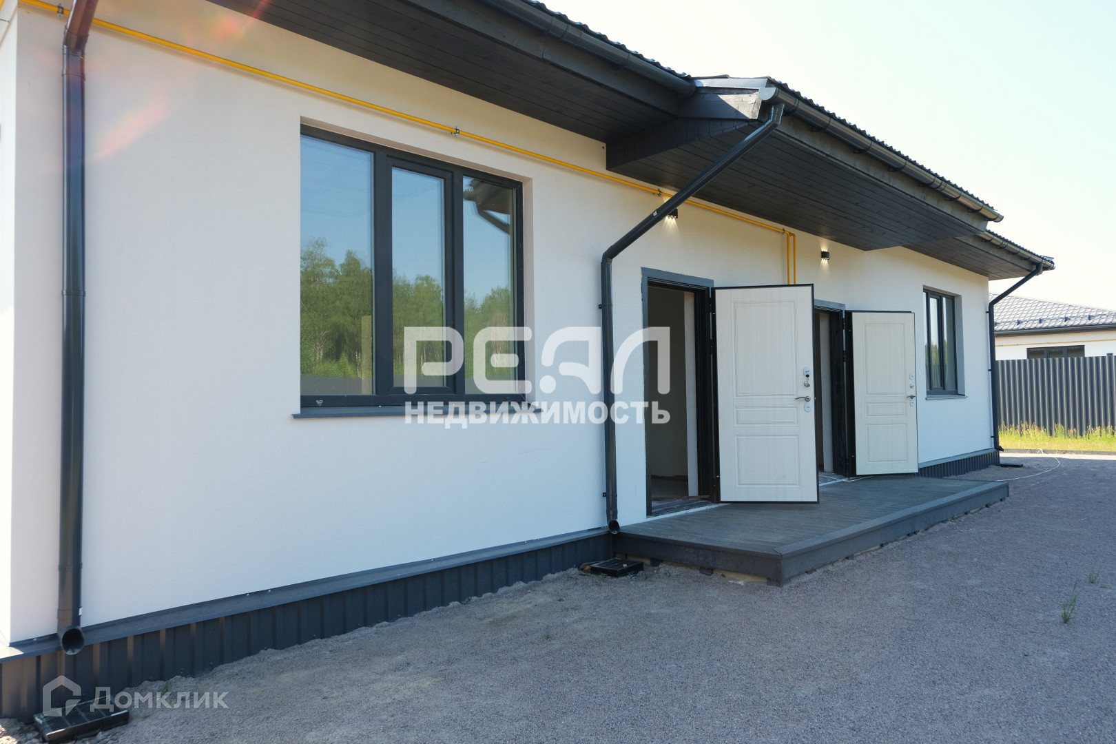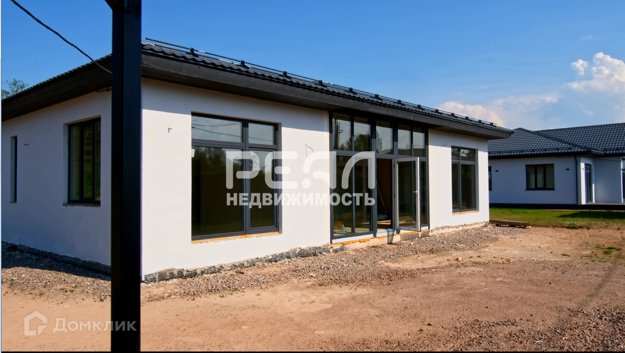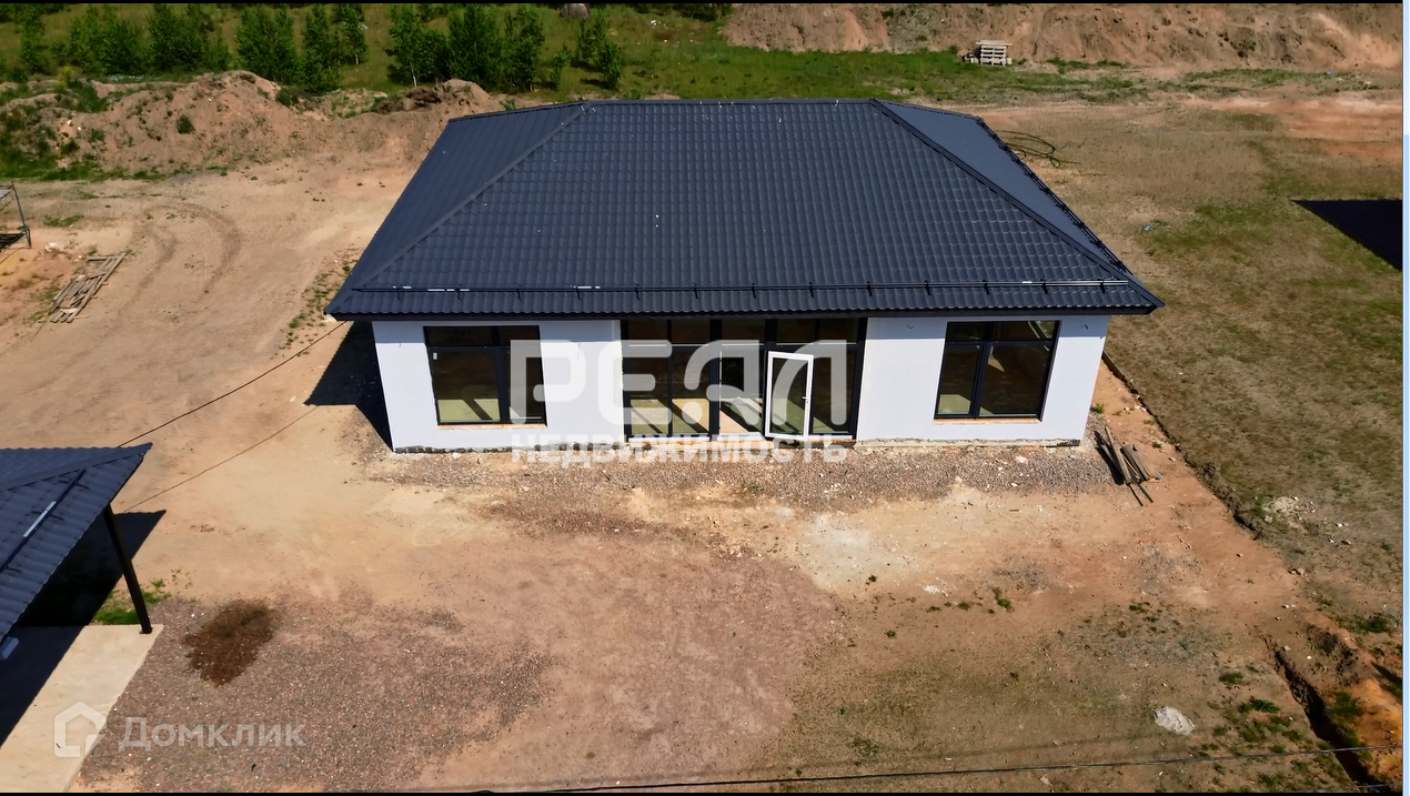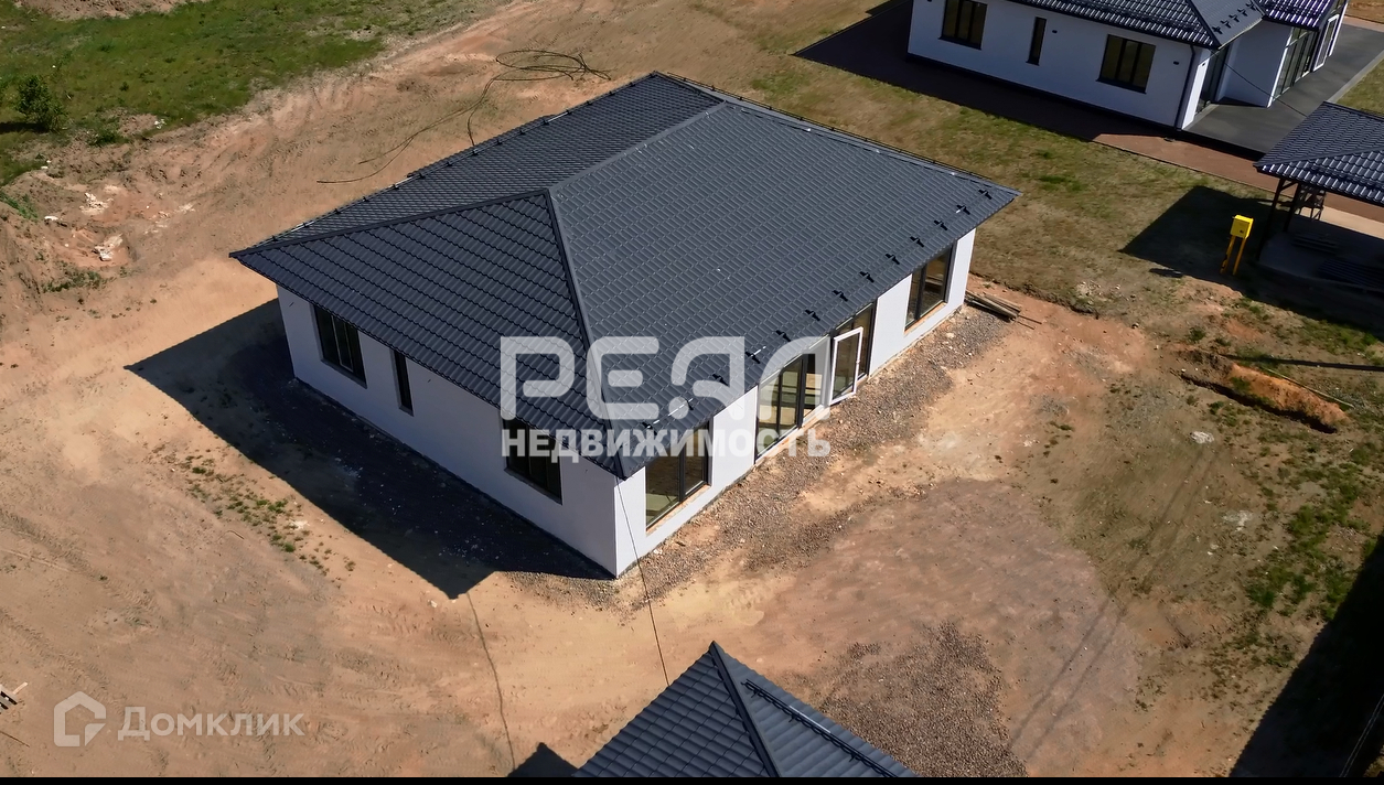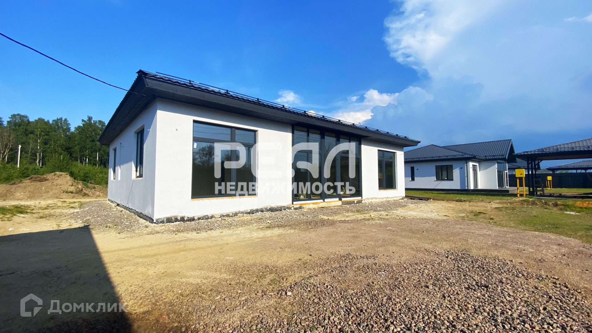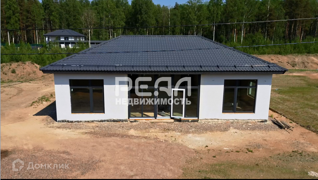 Фундамент дома-плита, материал стен – газобетон, крыша-металло-черепица. Внутри дома чистовая отделка, снаружи – штукатурка.
