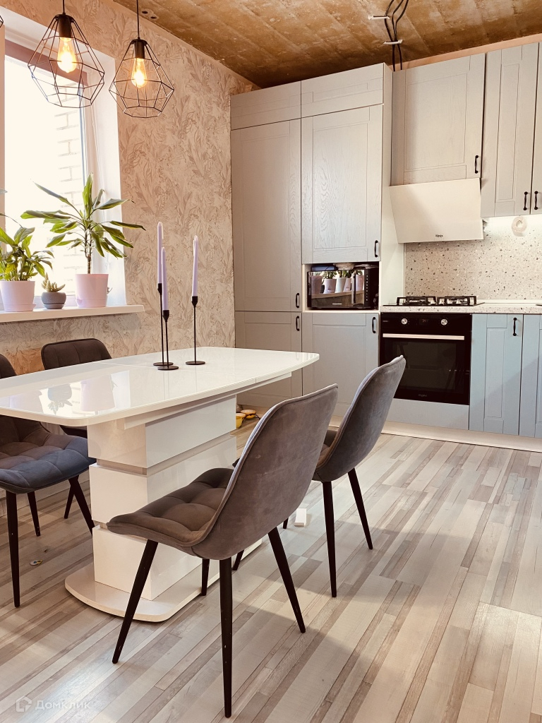 Первый этаж квартиры вмещает в себя просторную кухню Delinia Томари в очень приятном оттенке, с качественной раковиной из искусственного камня и идеально подобранным смесителем FRAP.