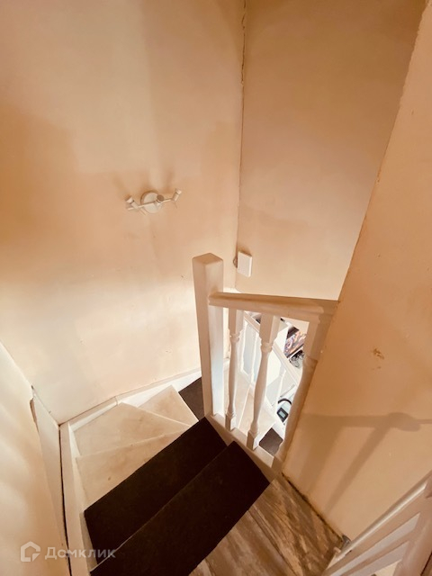 Лестница на второй этаж из натурального дерева покрашена в белый цвет.