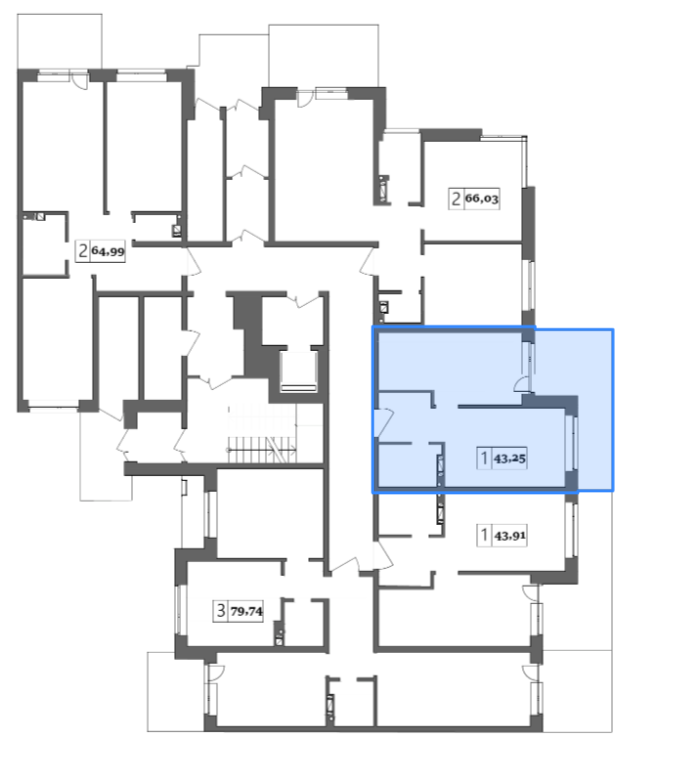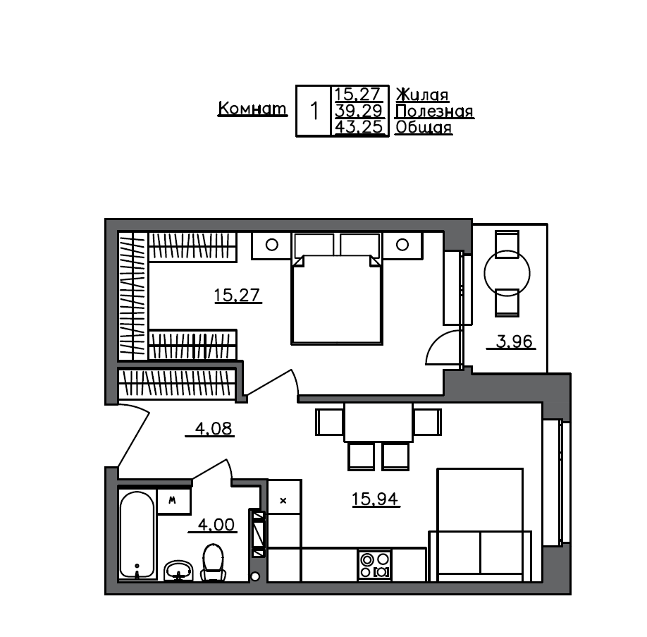 Общая площадь 43.25 м2