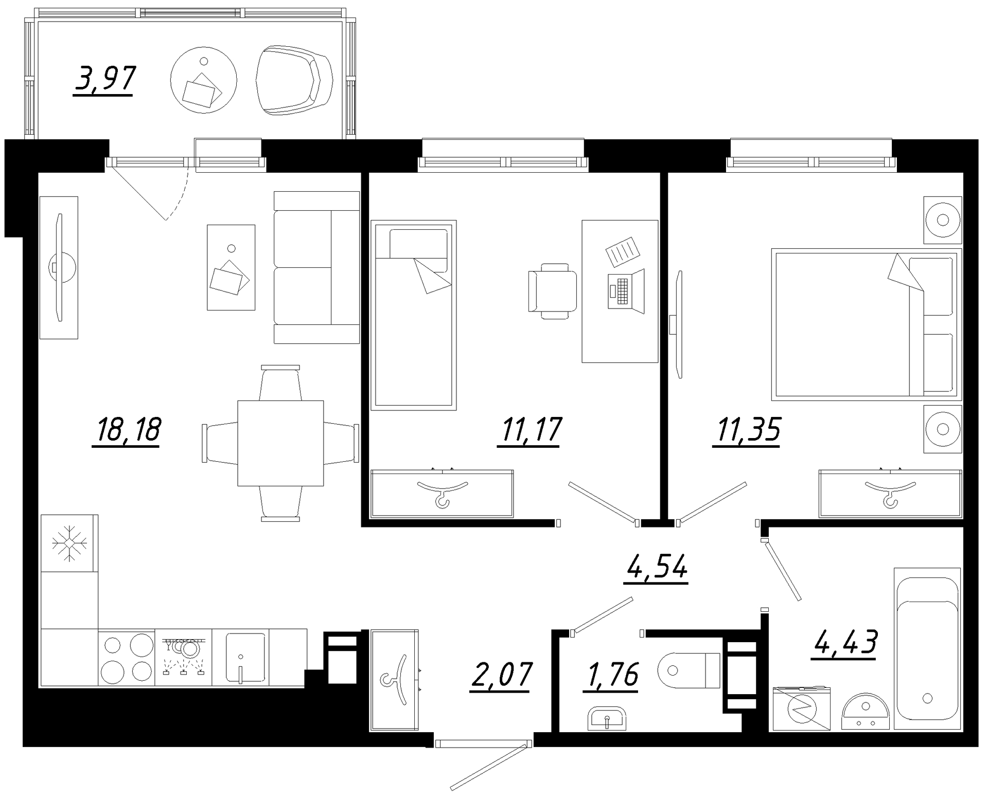 Общая площадь 55 м2