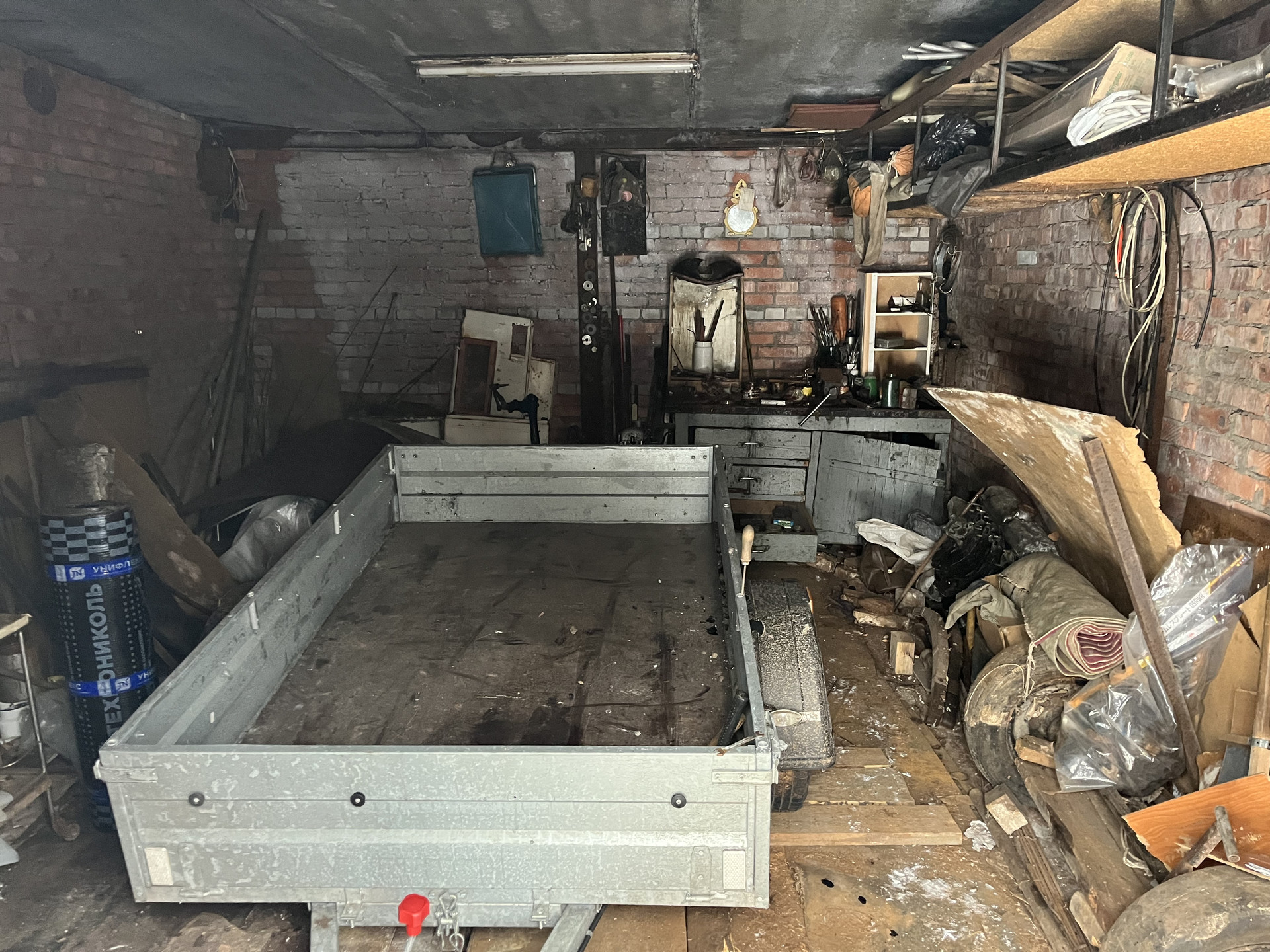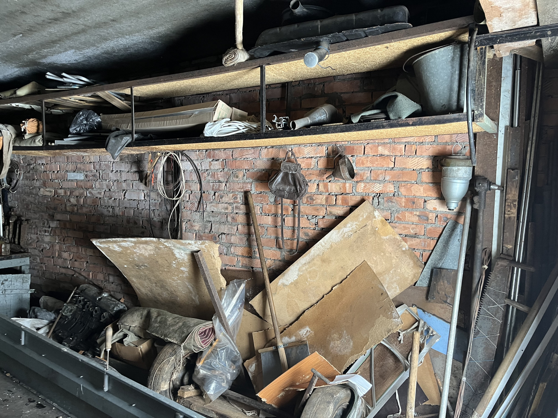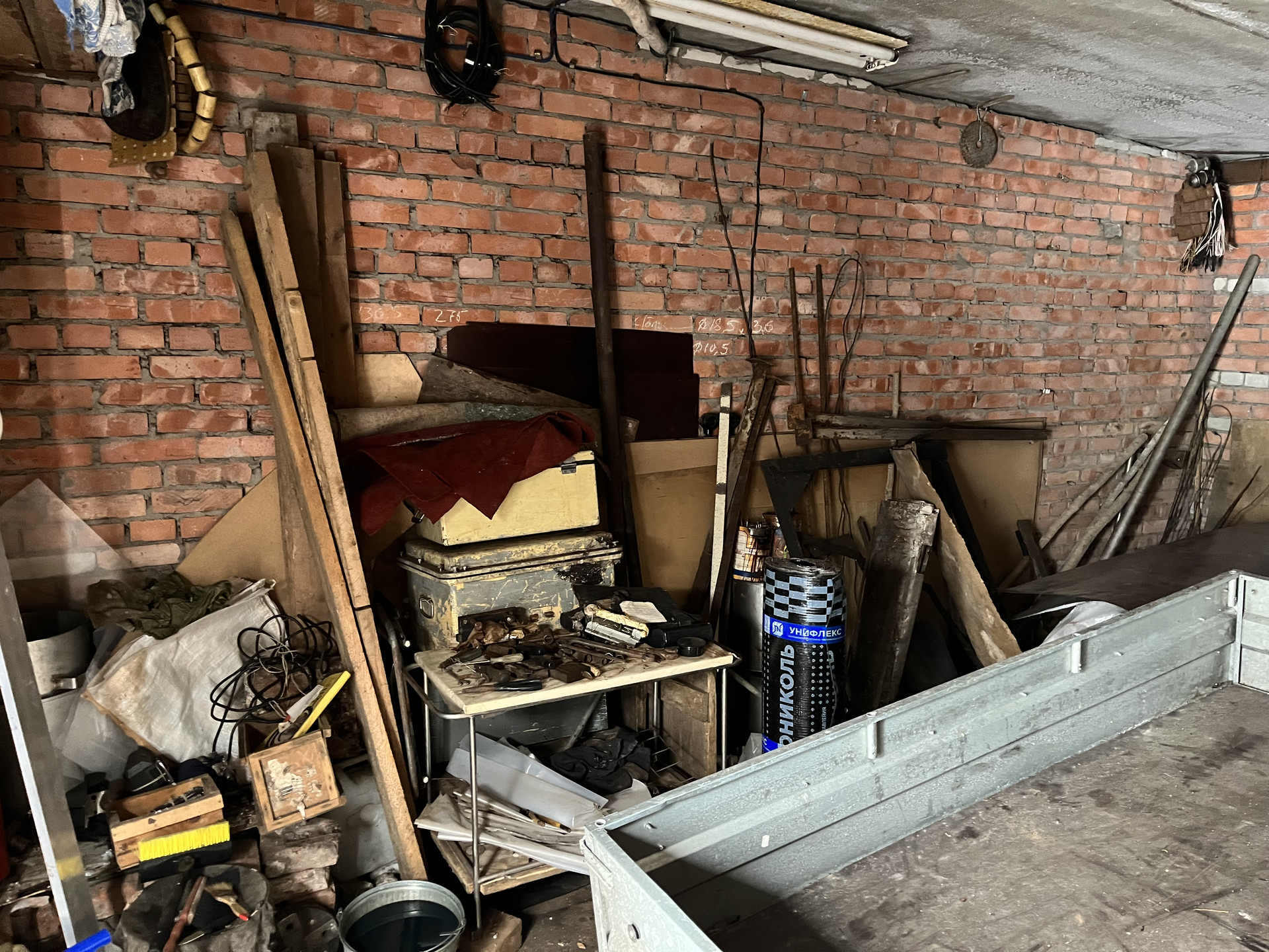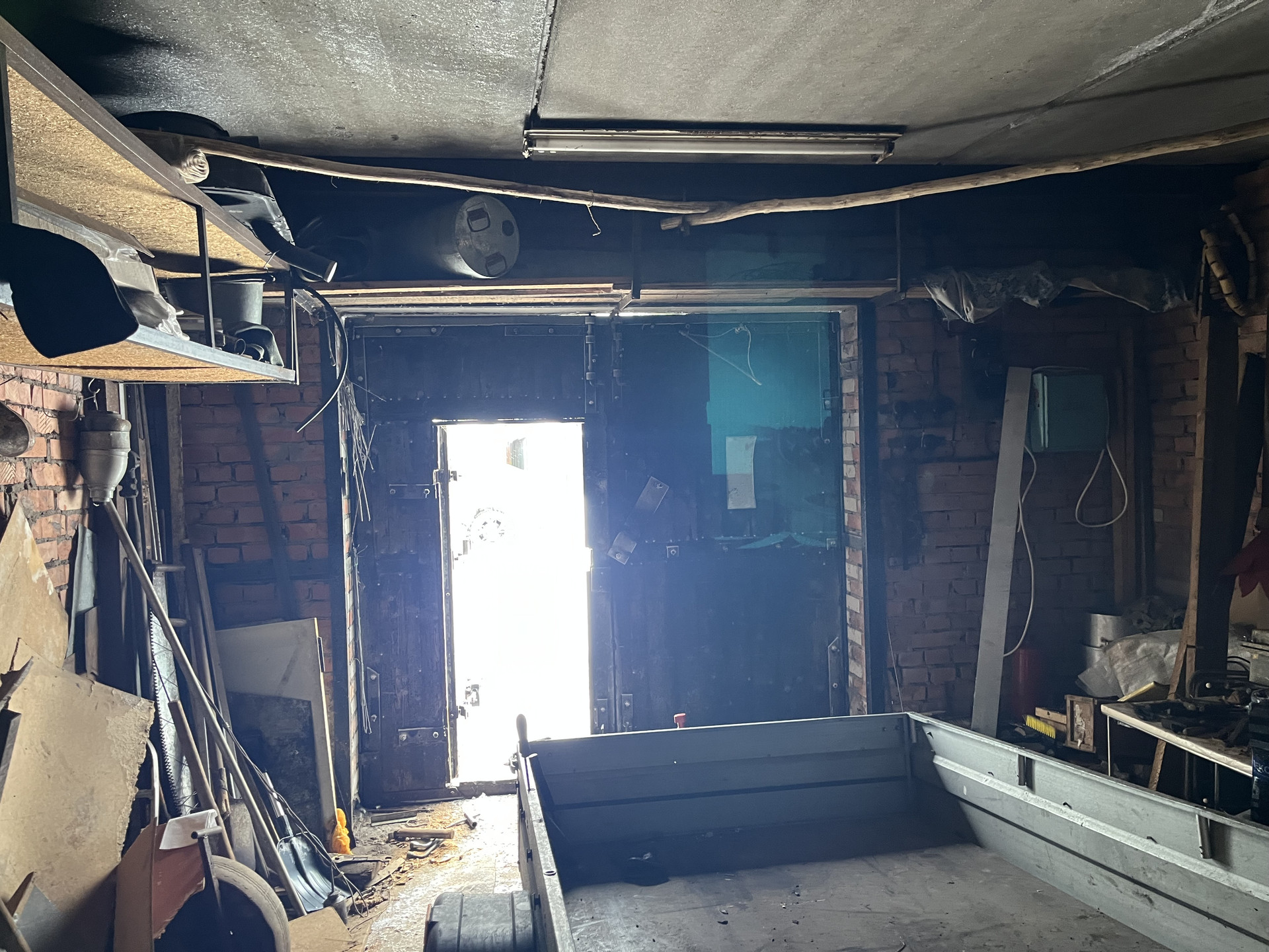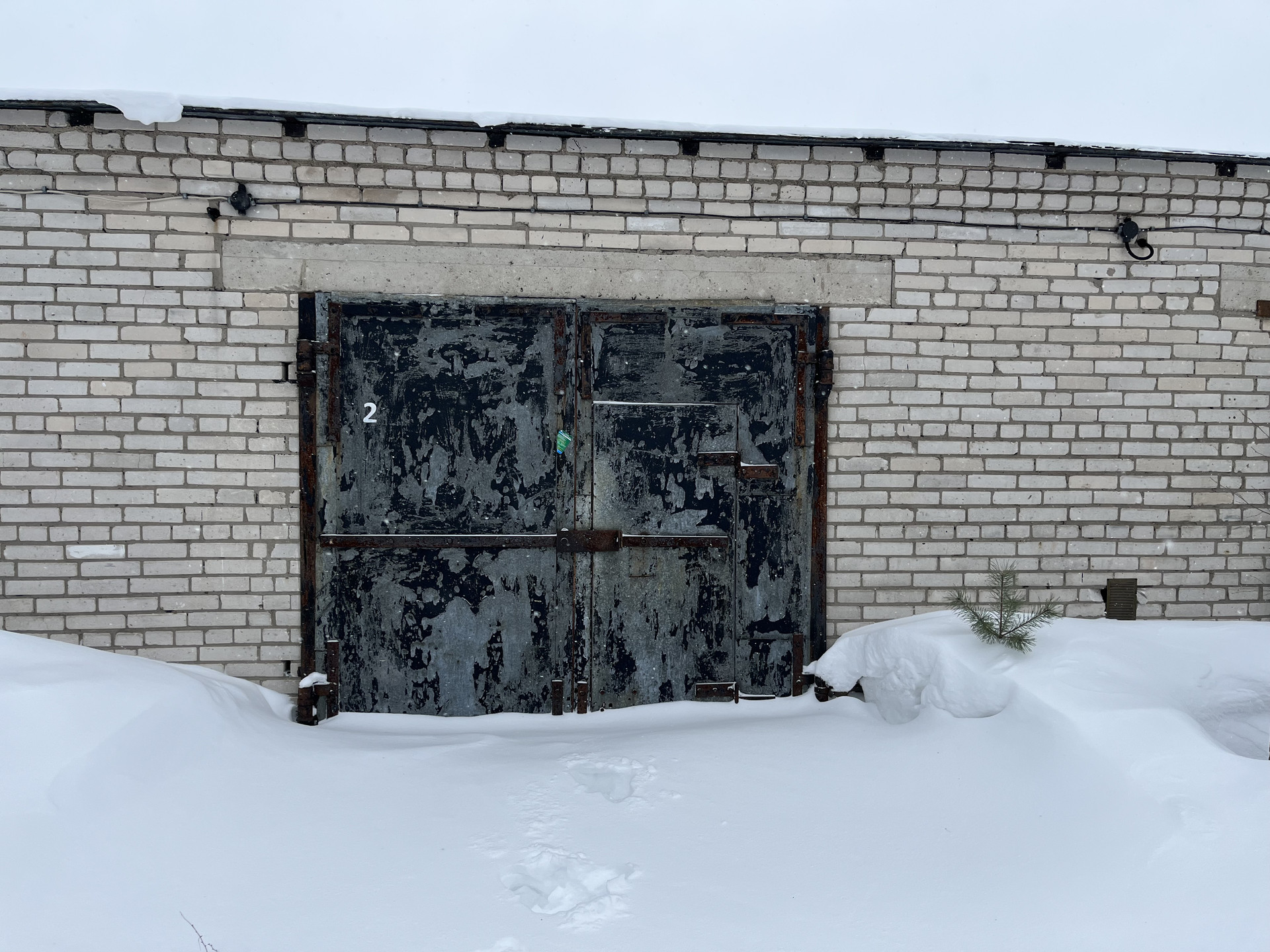 кирпичный гараж в ГК Посечено 6х4 м. ворота ш-2,4м. деревянные обиты железом.
