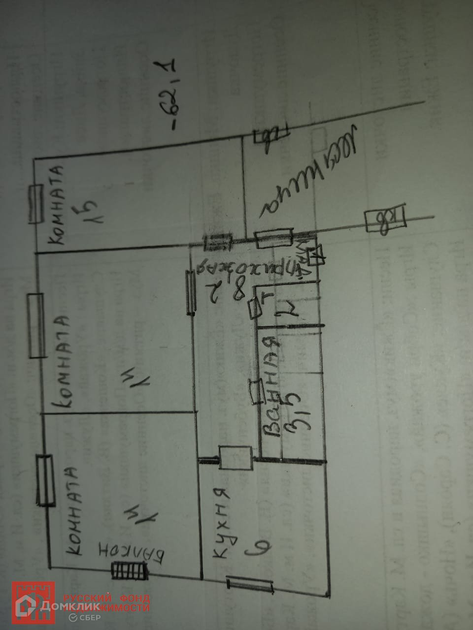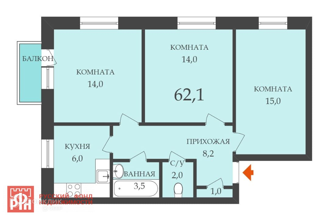 Общая площадь 62.1 м2