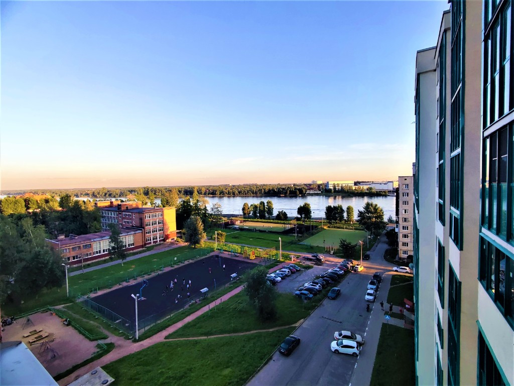 В паре шагов набережная Невы с велосипедной дорожкой и отдельной полосой для пеших прогулок. Район очень тихий, зелёный и благоустроенный, стремительно развивающийся. В каждом дворе по современной детской площадке.