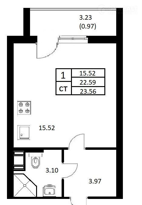 Общая площадь 22.6 м2