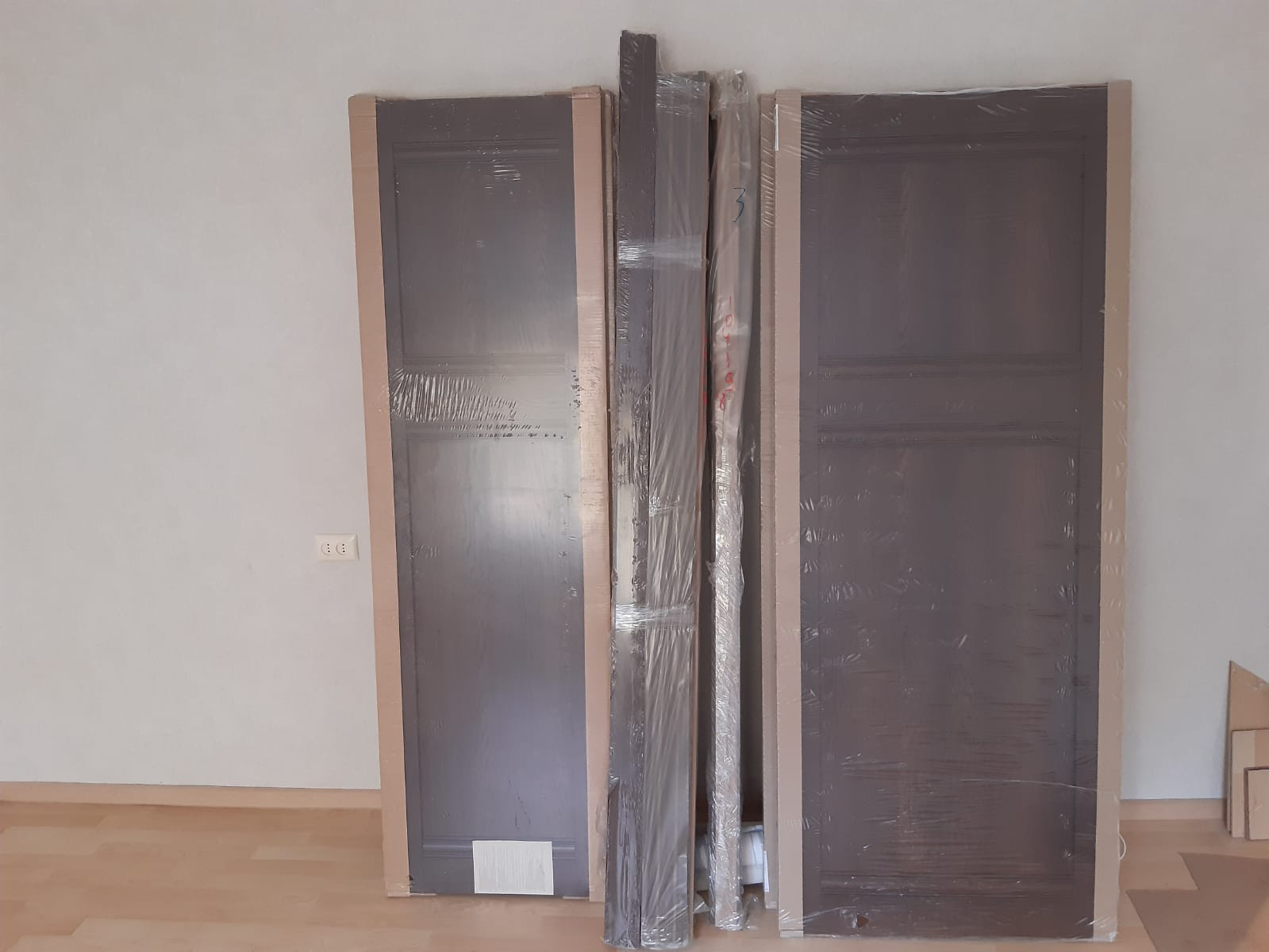В квартиру закуплены новые двери и коробки под двери.