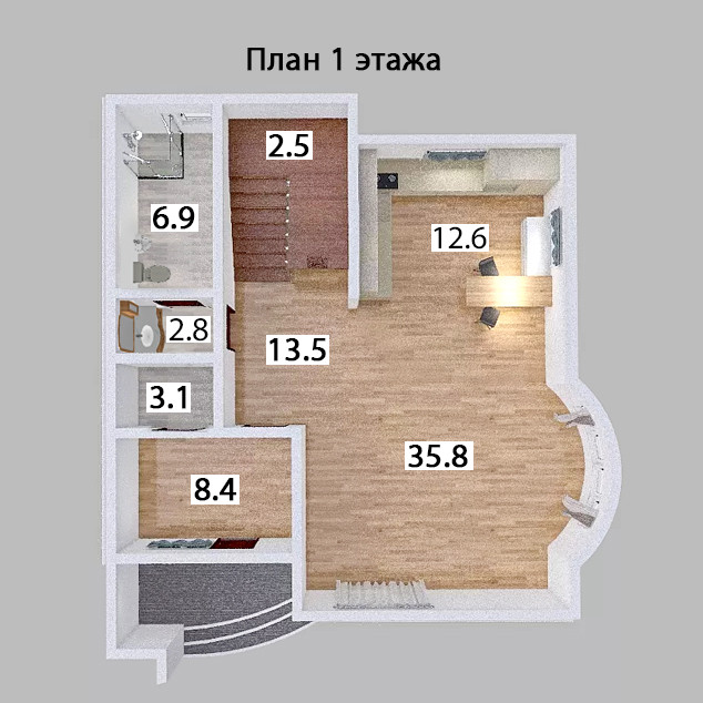 - 1 этаж 86,7 м2