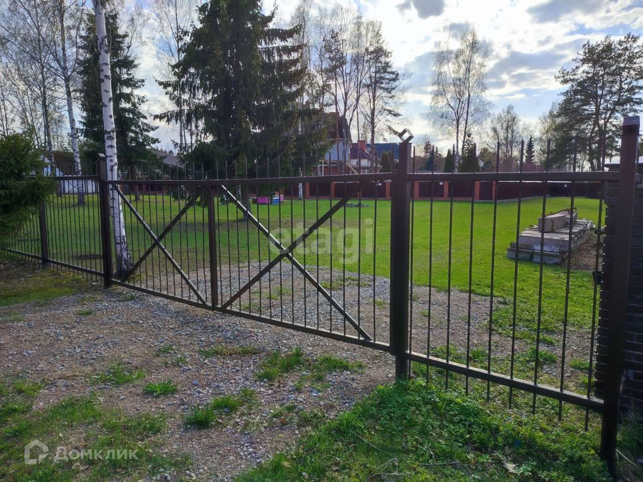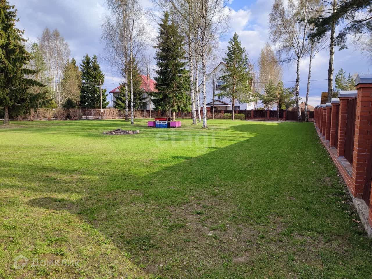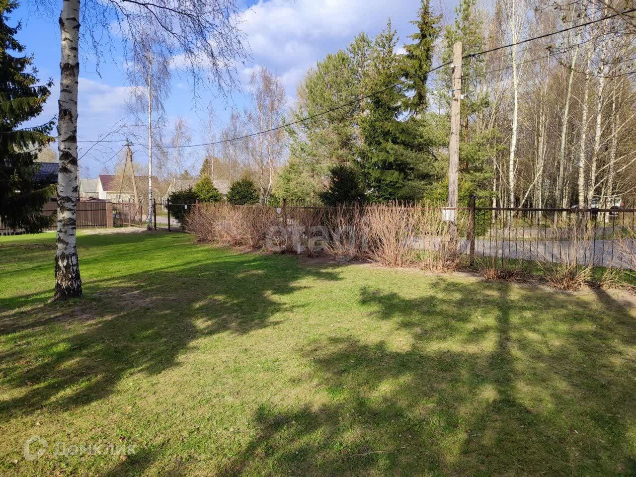 Территория участка огорожена забором.
