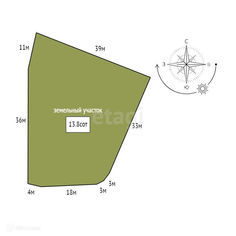 Площадь участка 13.8 сот.