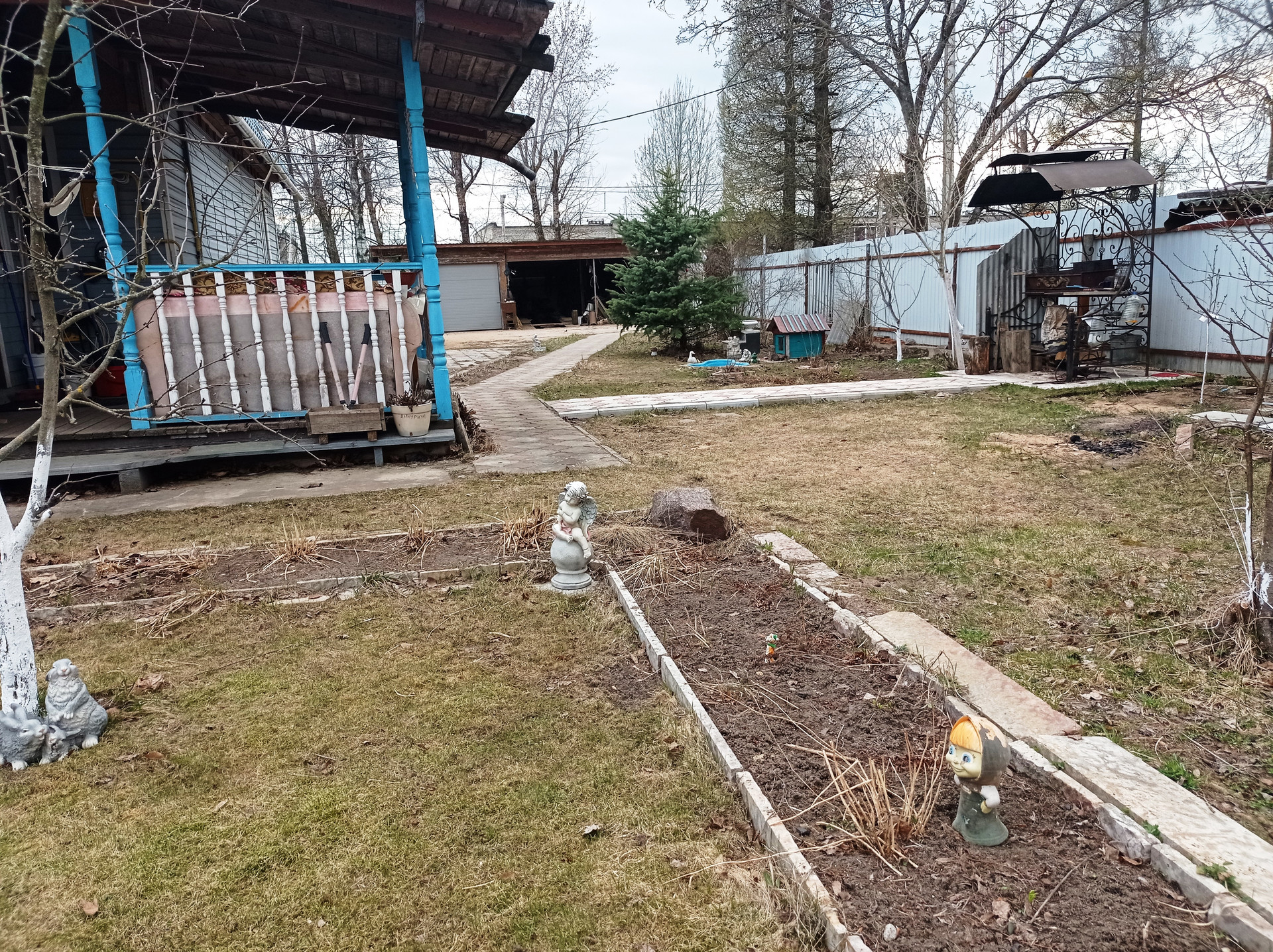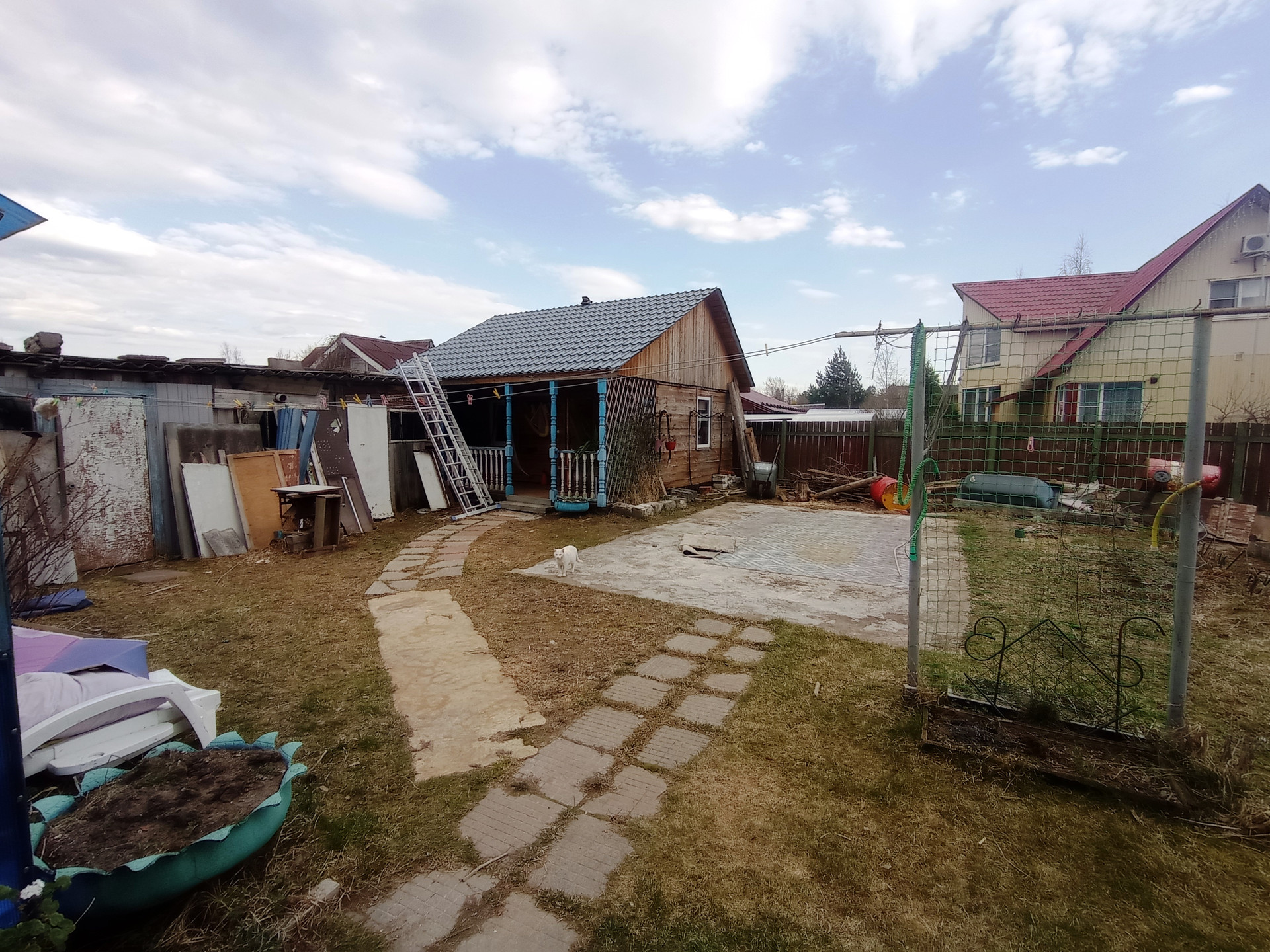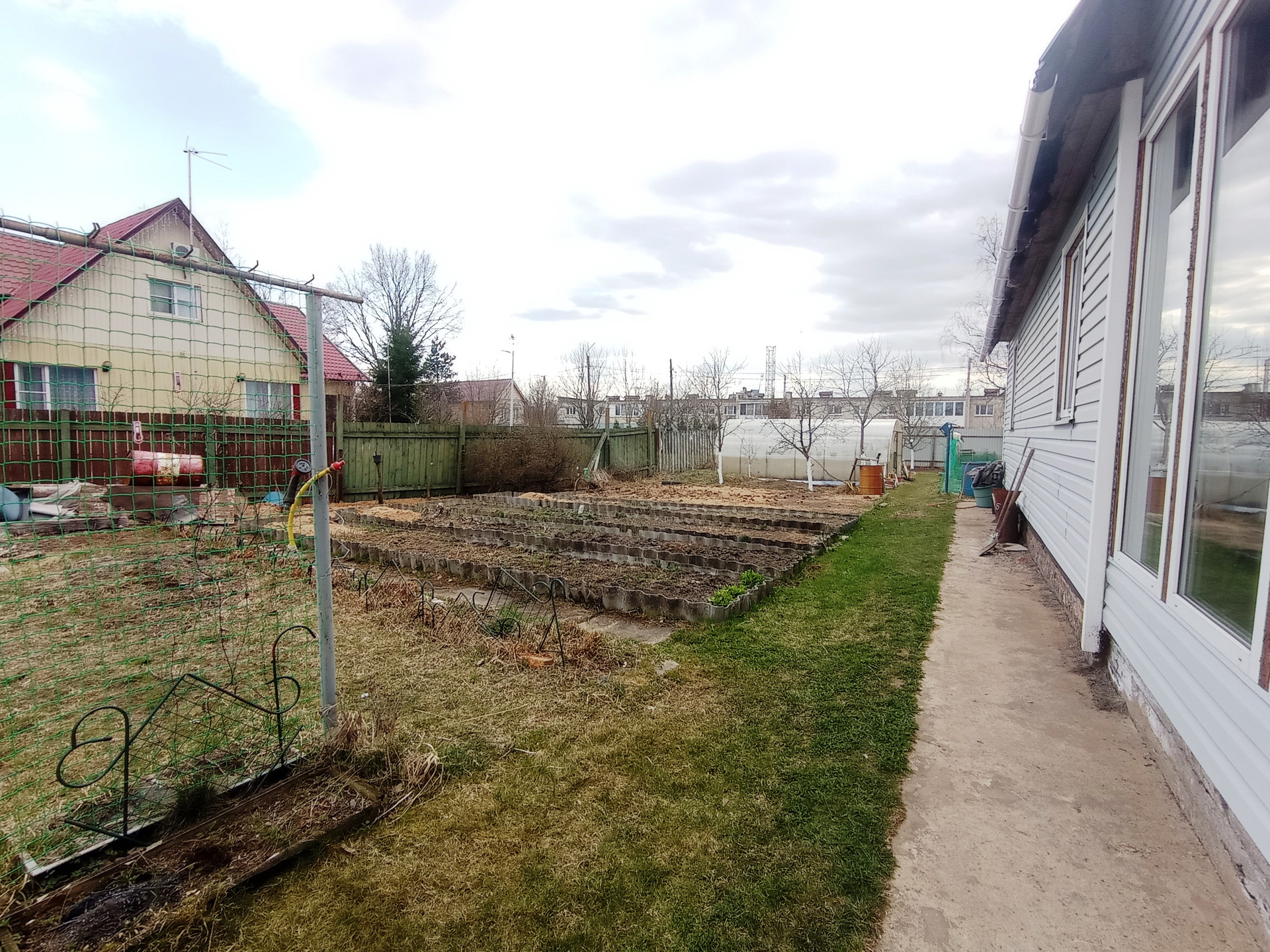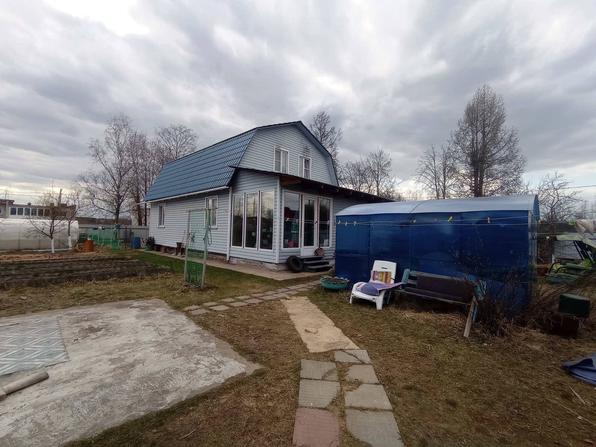 На участке: гараж с эстакадой, сарай, курятник с вольером, теплица, разработанные грядки, место под бассейн (каркасный бассейн 3х6 в подарок), новая баня, летняя беседка, мангальная зона, пруд. Дорожки выложены плитами. Растут: яблони, груши, виноград, розарий на 67 кустов, флоксы, голубая ель, сирень, плодовые кустарники и т.п.