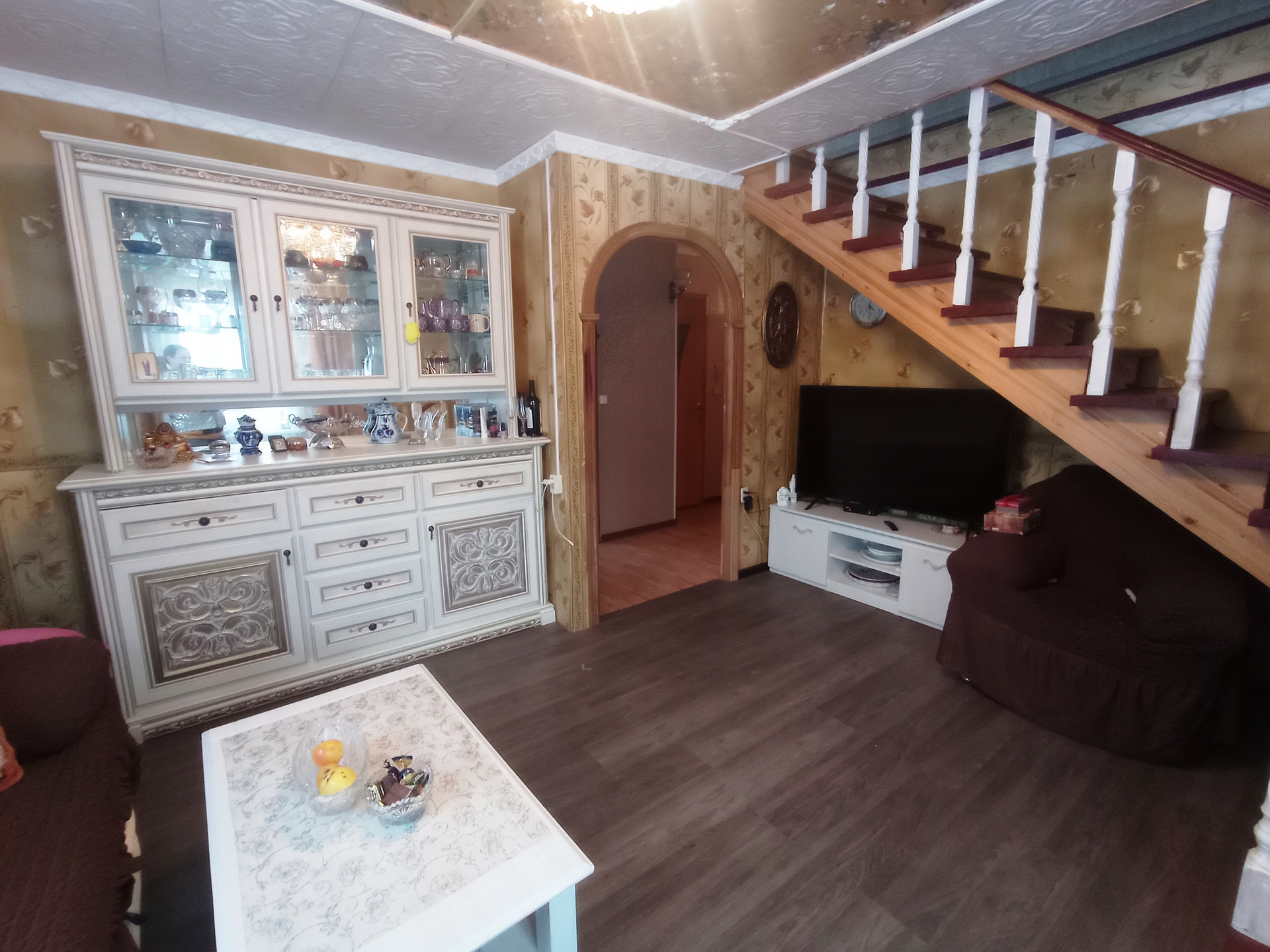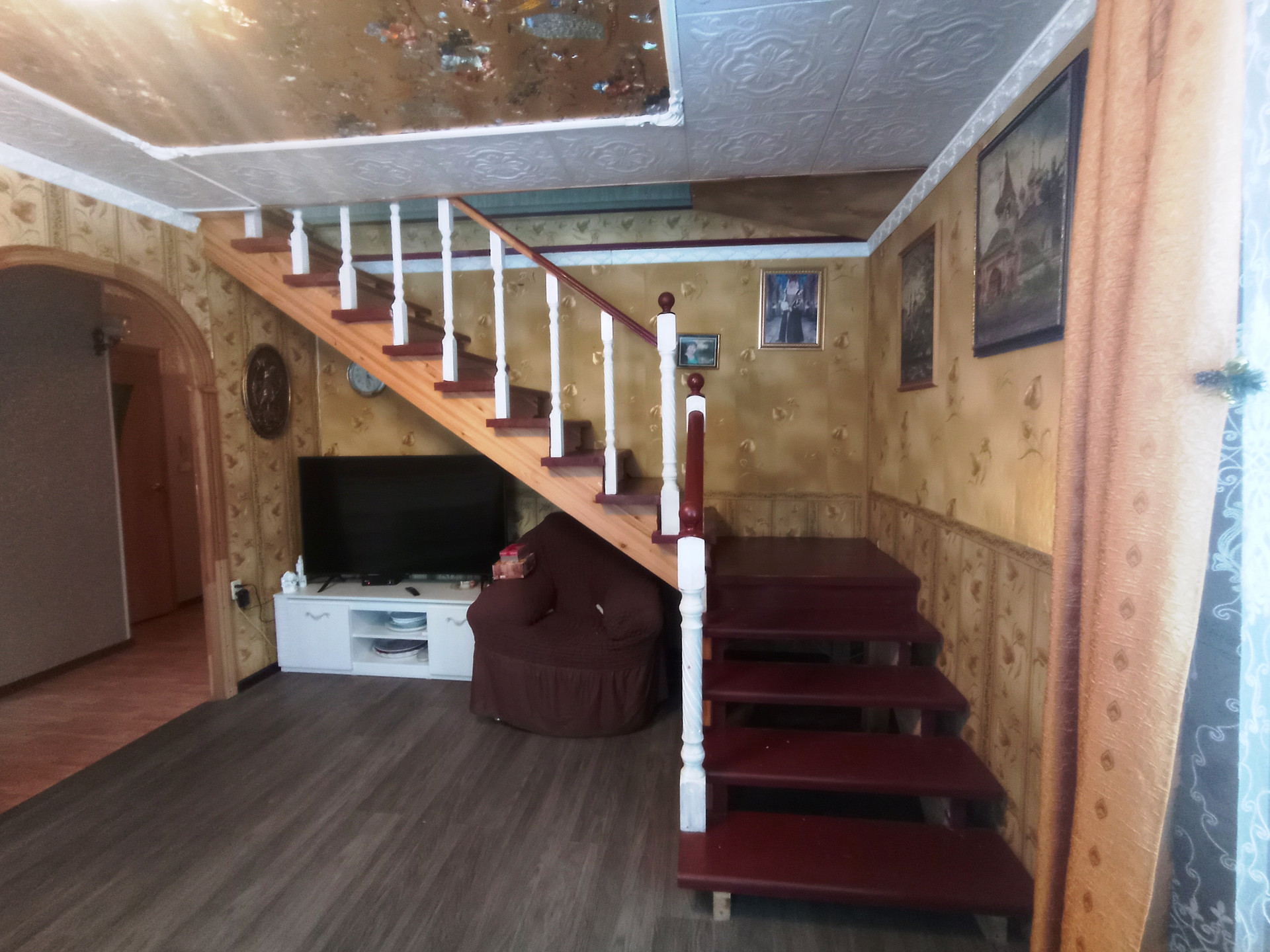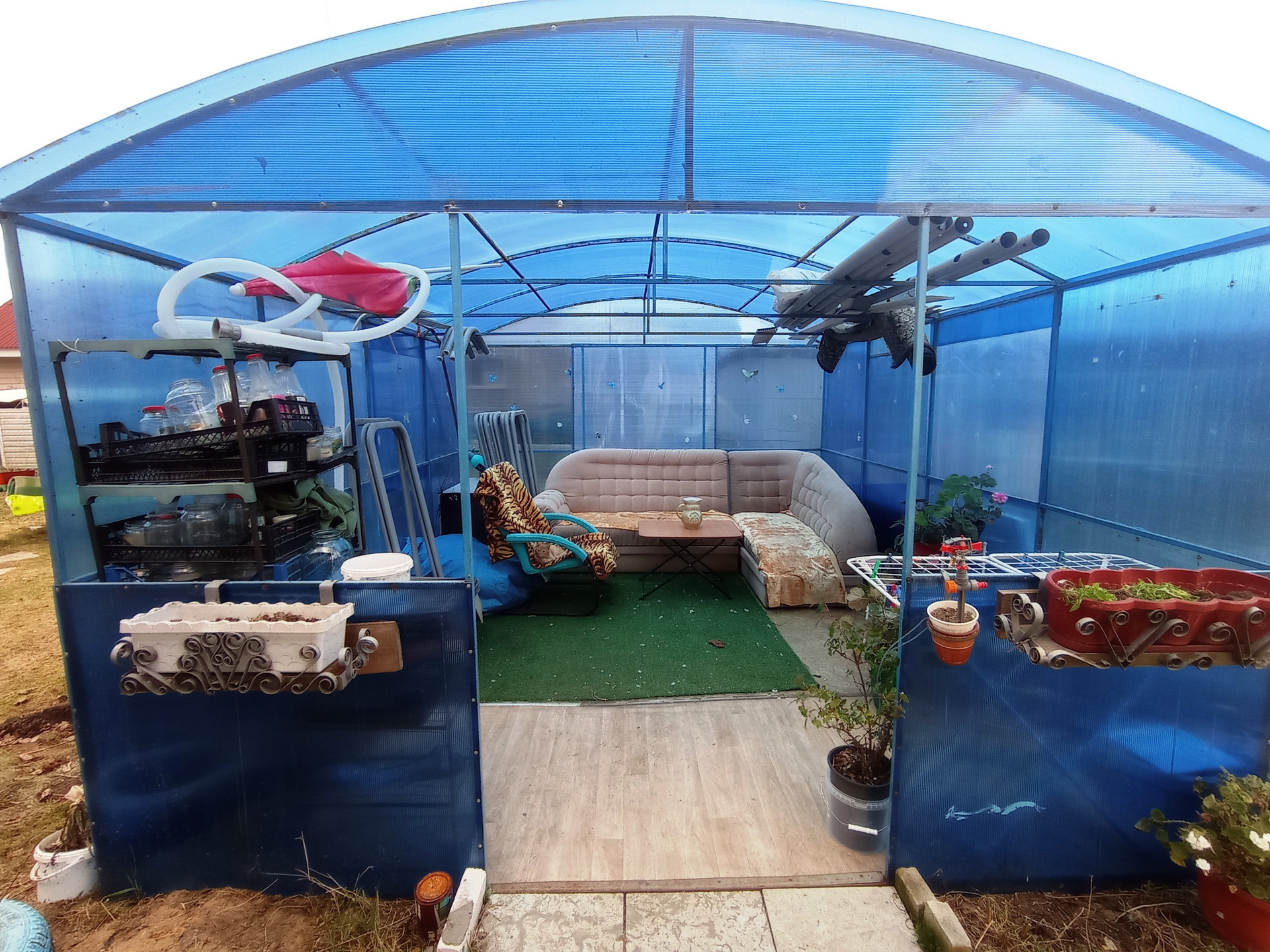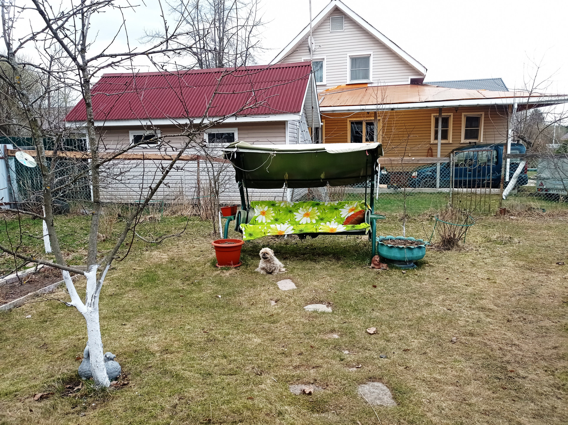 На участке: гараж с эстакадой, сарай, курятник с вольером, теплица, разработанные грядки, место под бассейн (каркасный бассейн 3х6 в подарок), новая баня, летняя беседка, мангальная зона, пруд. Дорожки выложены плитами. Растут: яблони, груши, виноград, розарий на 67 кустов, флоксы, голубая ель, сирень, плодовые кустарники и т.п.