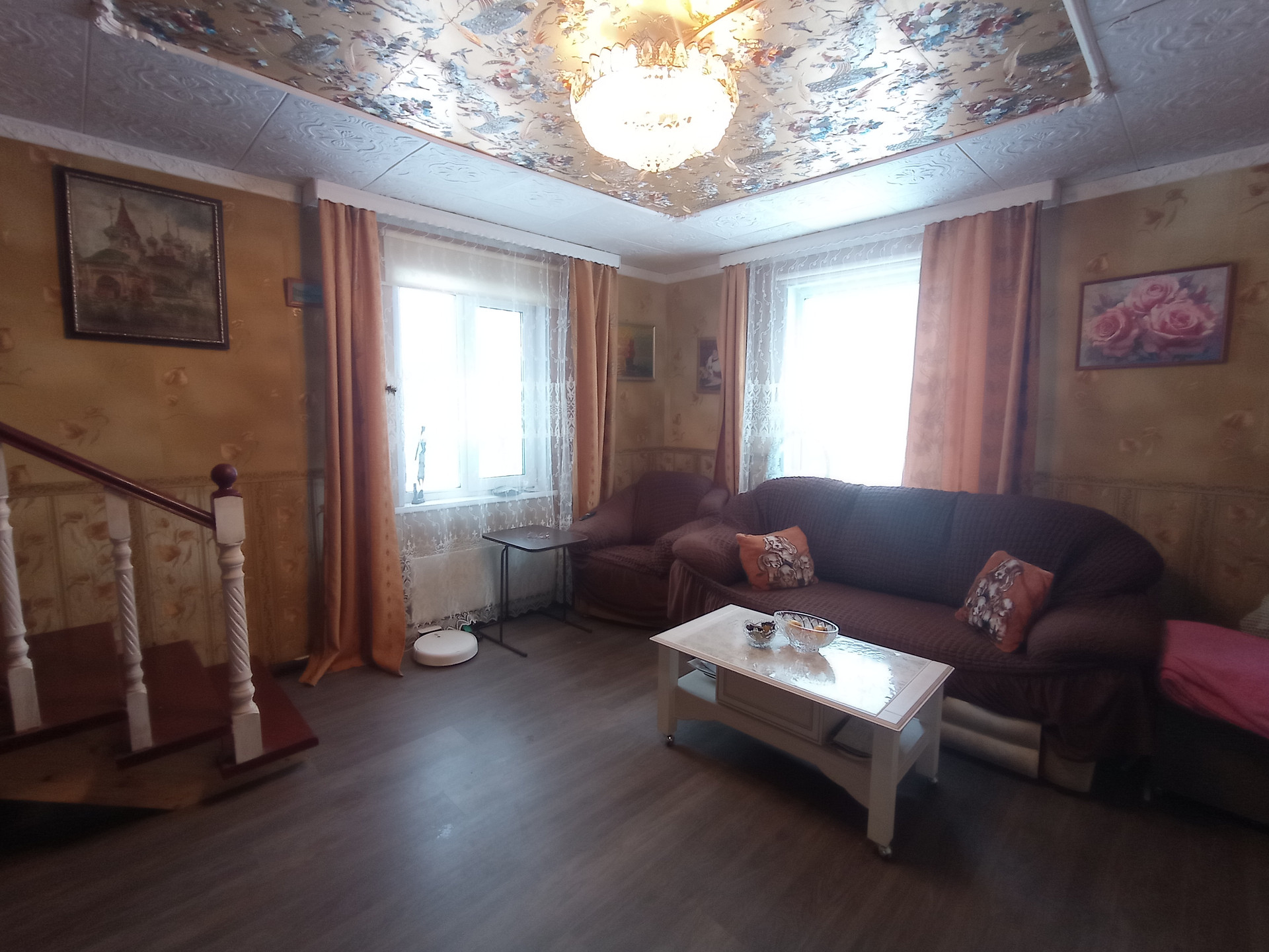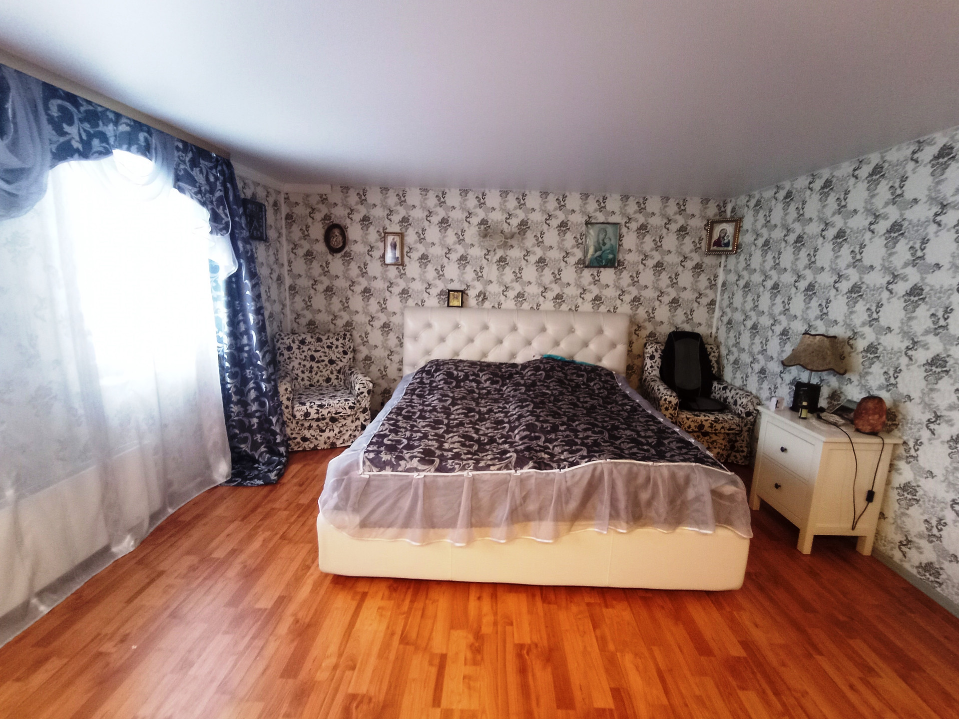 Дом: 1 этаж – зимний сад, котельная, комната, ванна, туалет, кухня 15 м², гостиная 20 м², погреб. 2 этаж – комната 25 м², спальня 24 м², гардеробная/кладовка.