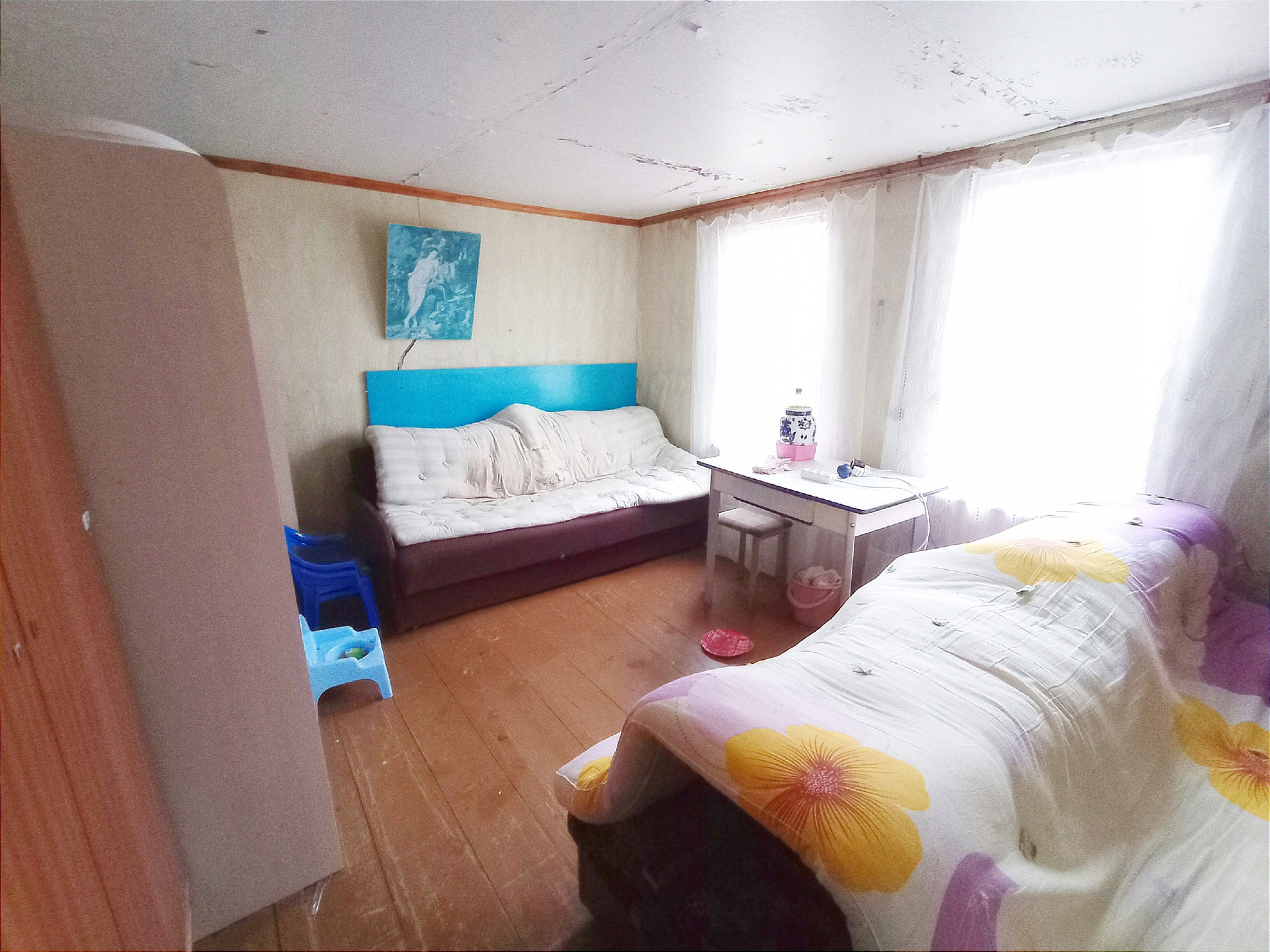 Дом старенький, но жить можно. Печь греет) 2 комнаты, кухня, веранда и прихожая.