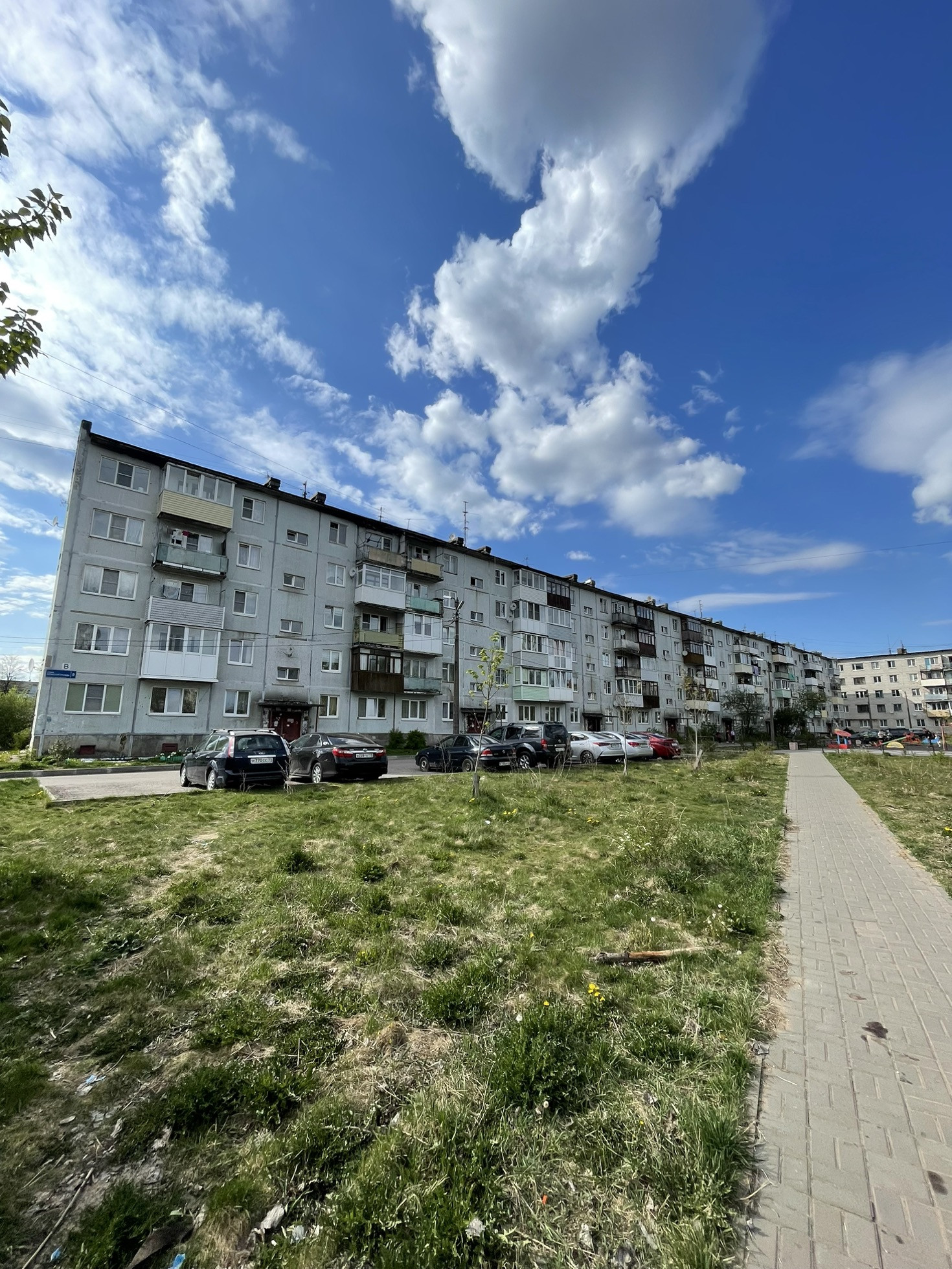 Окна в квартире выходят на обе стороны дома, (спальня, гостевая на запад; гостиная, кухня на восток) во дворе детская площадка, открытая парковка.