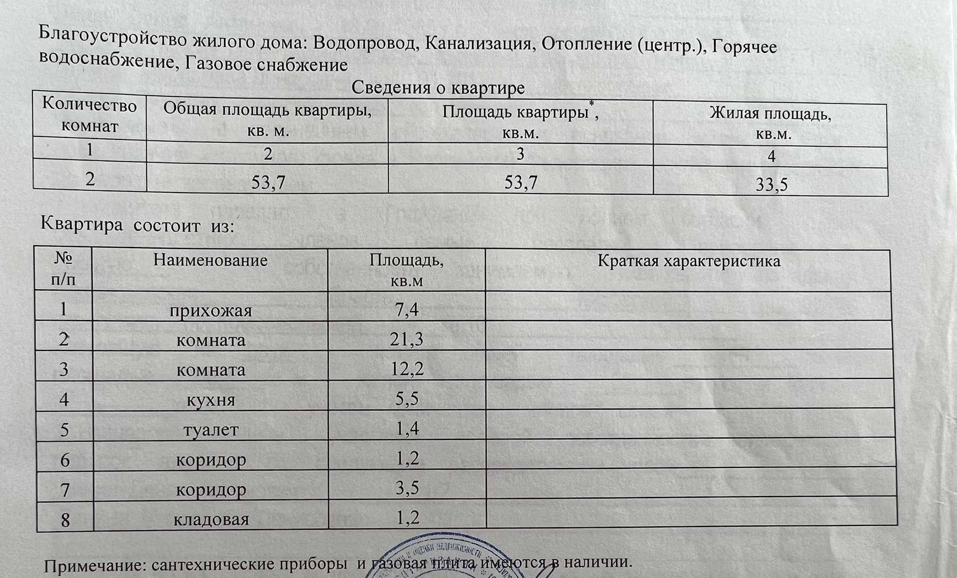 Общая площадь 53.7 м2