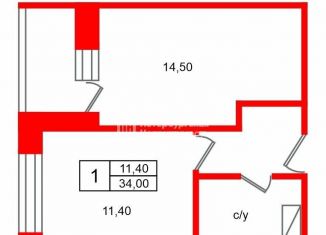 Общая площадь: 34.1 м2