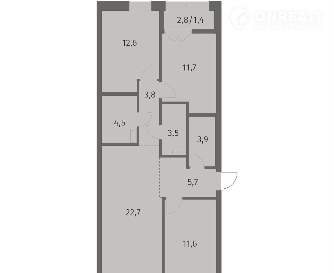 3-комнатная квартира, 81.6 м2, этаж 4 / 12, на продажу в городском посёлке Новоселье