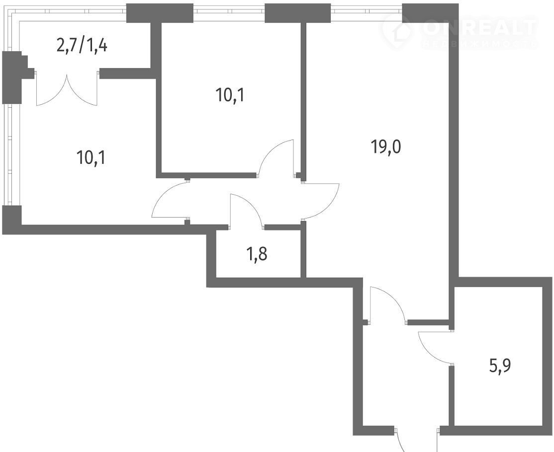 Общая площадь 55.1 м2