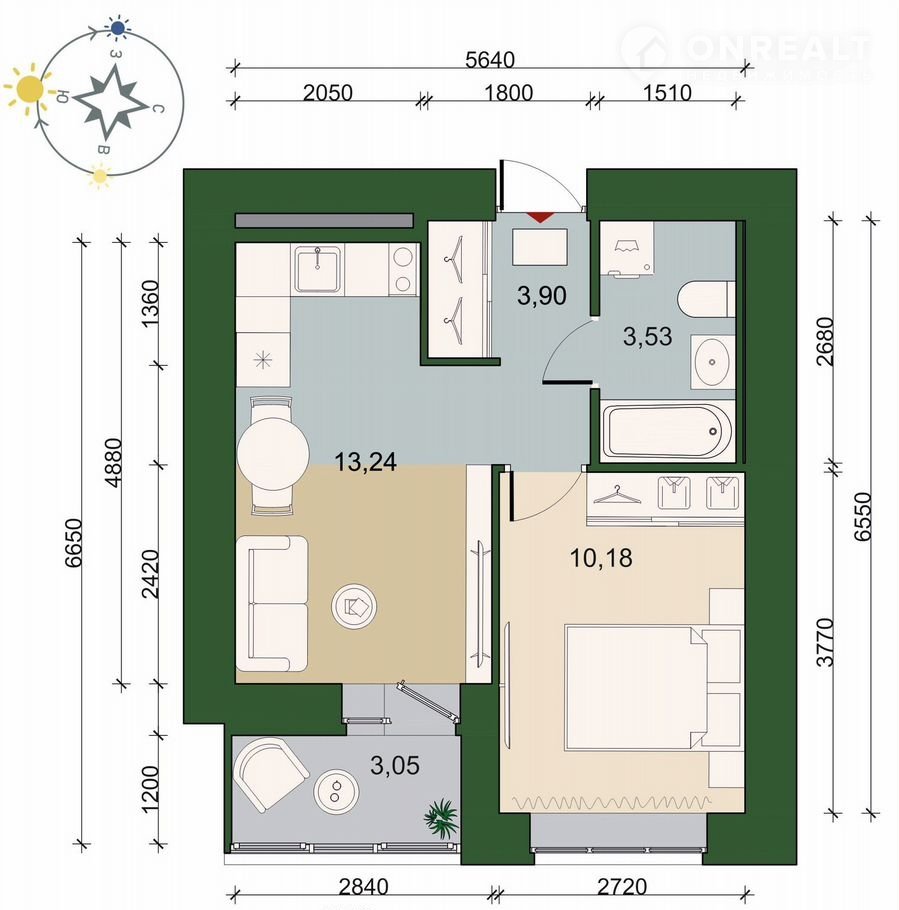 Количество комнат 1
