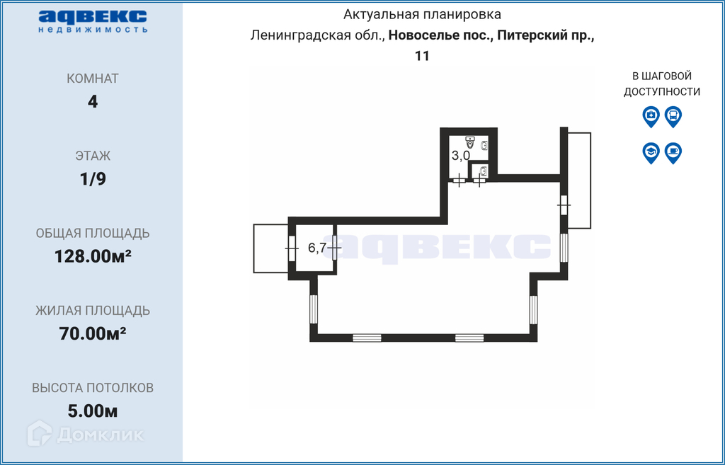 Общая площадь 128 м2