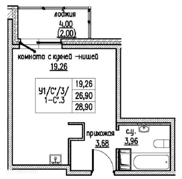 Общая площадь 28.9 м2