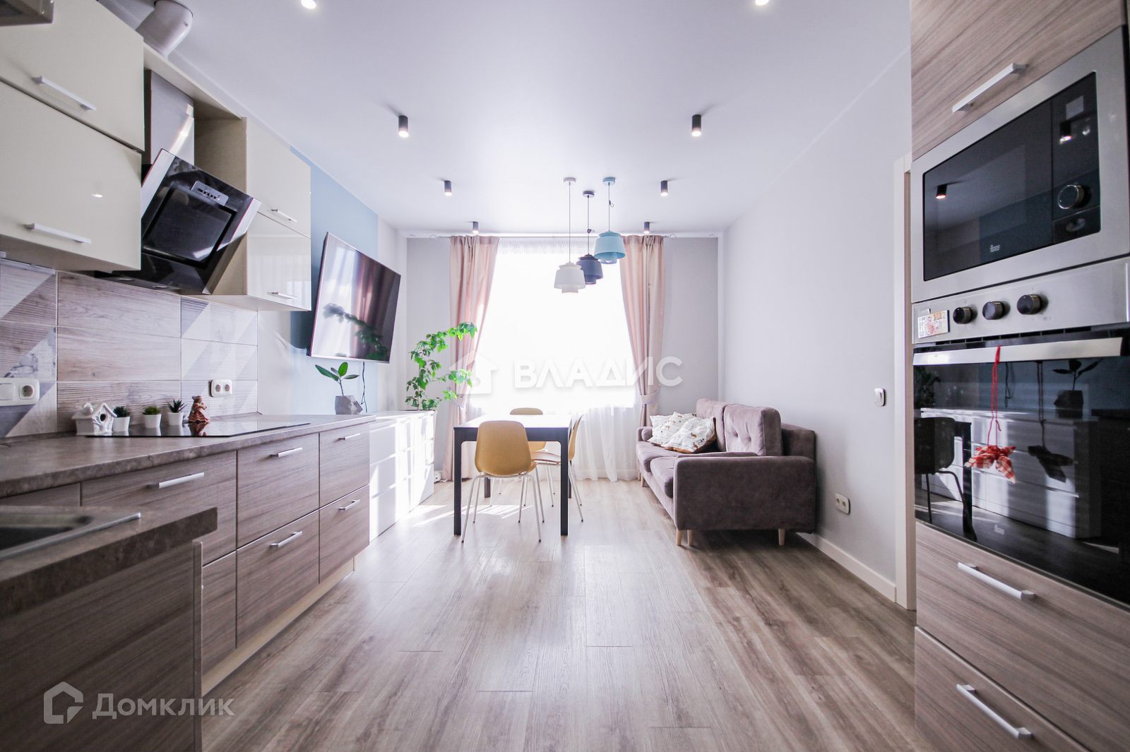 В квартире сделан современный, качественный ремонт, теплые полы, два санузла, встроенная современная техника на просторной кухне. Очень вместительный балкон. Комнаты изолированы по 14 и 13 кв. м, кухня-гостиная 19 кв. м. Из мебели: два просторных шкафа, кухонный гарнитур со всей встроенной техникой (холодильник, посудомоечная машина) - остаются новым хозяевам.