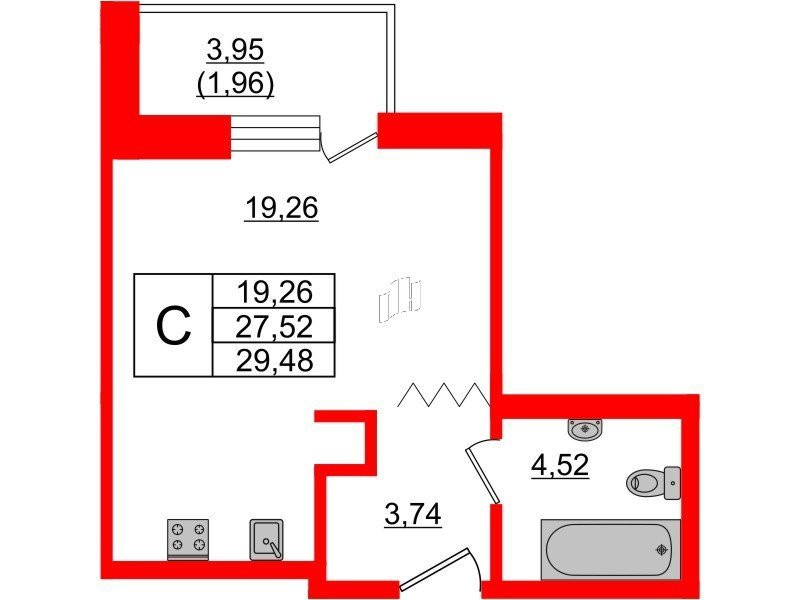 Общая площадь 29.48 м2