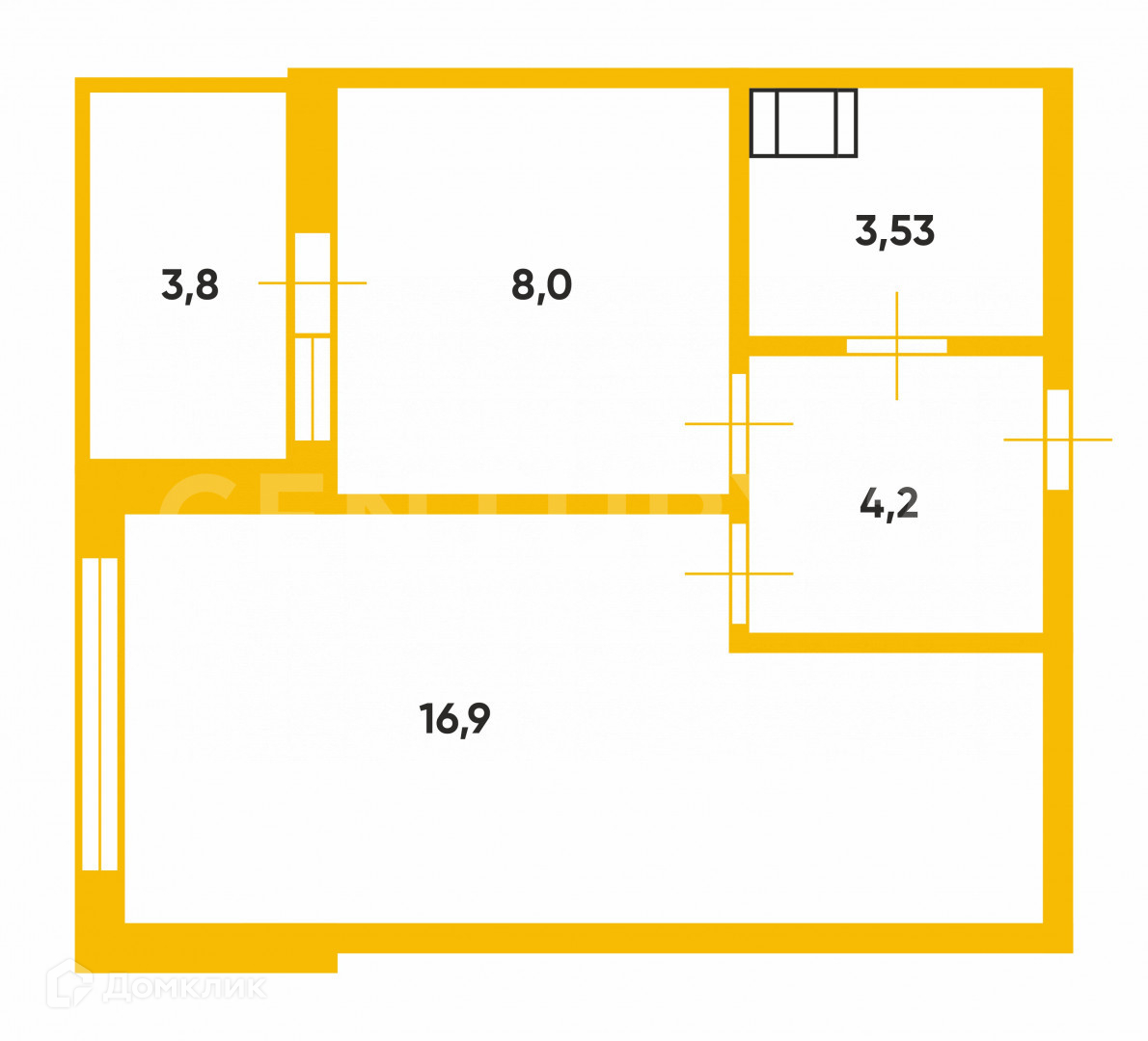 Жилая площадь 16.9 м2