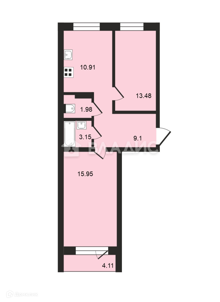Общая площадь 54.6 м2