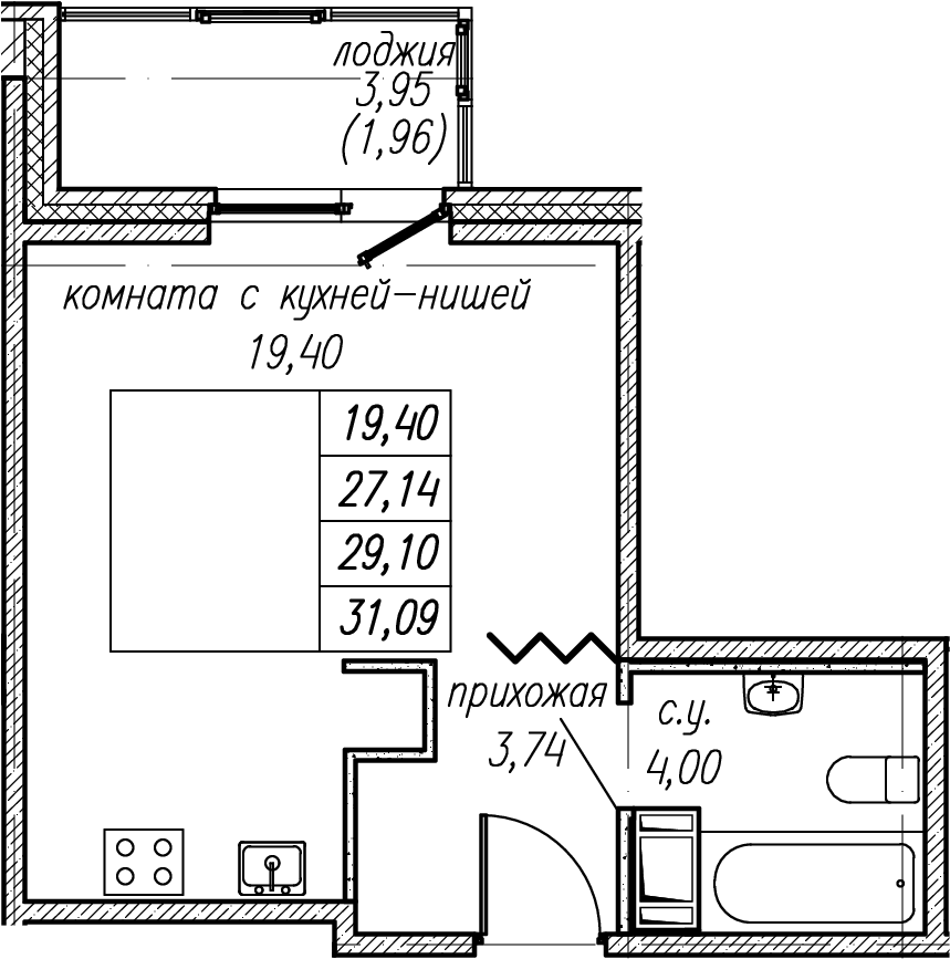 Общая площадь 31.09 м2