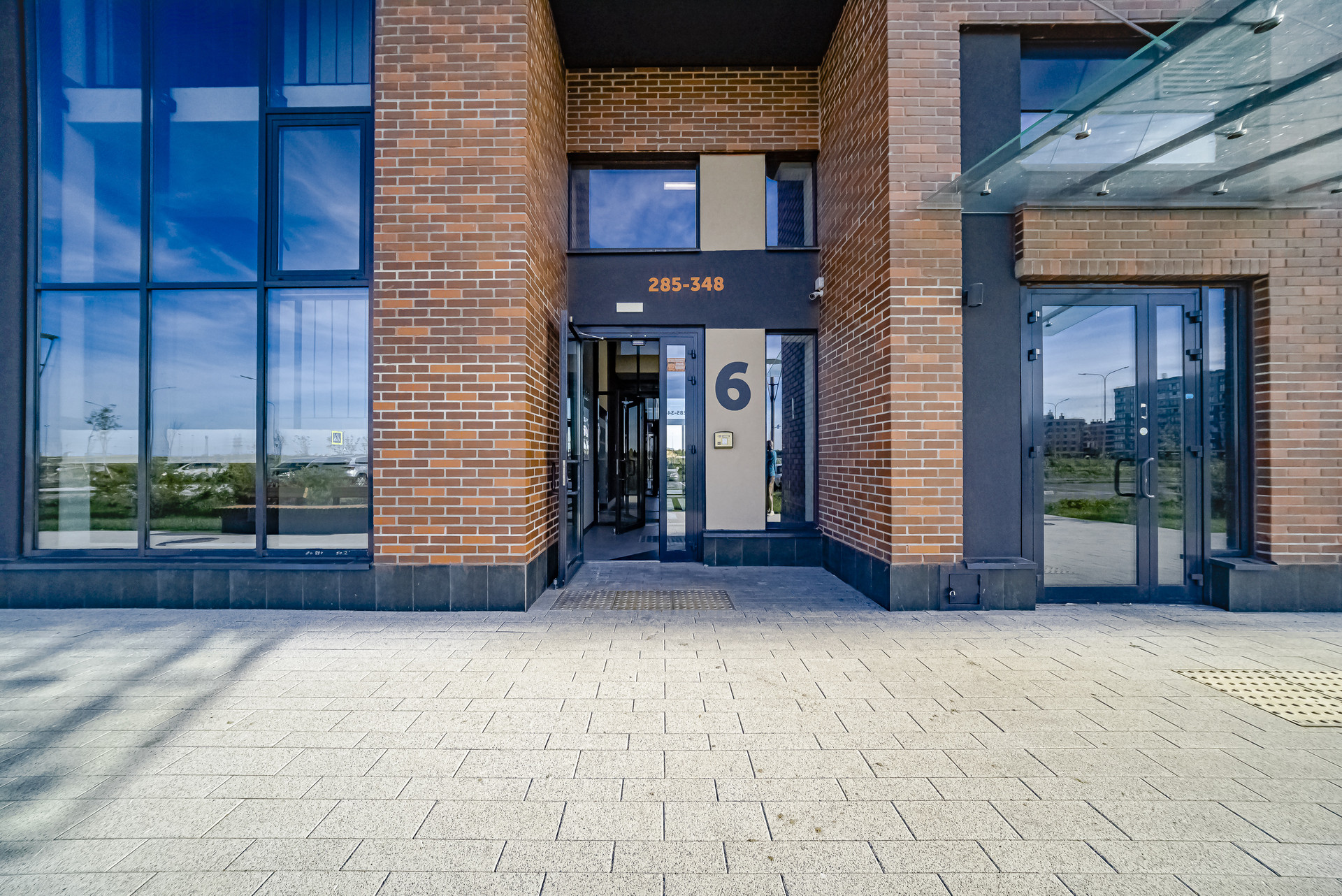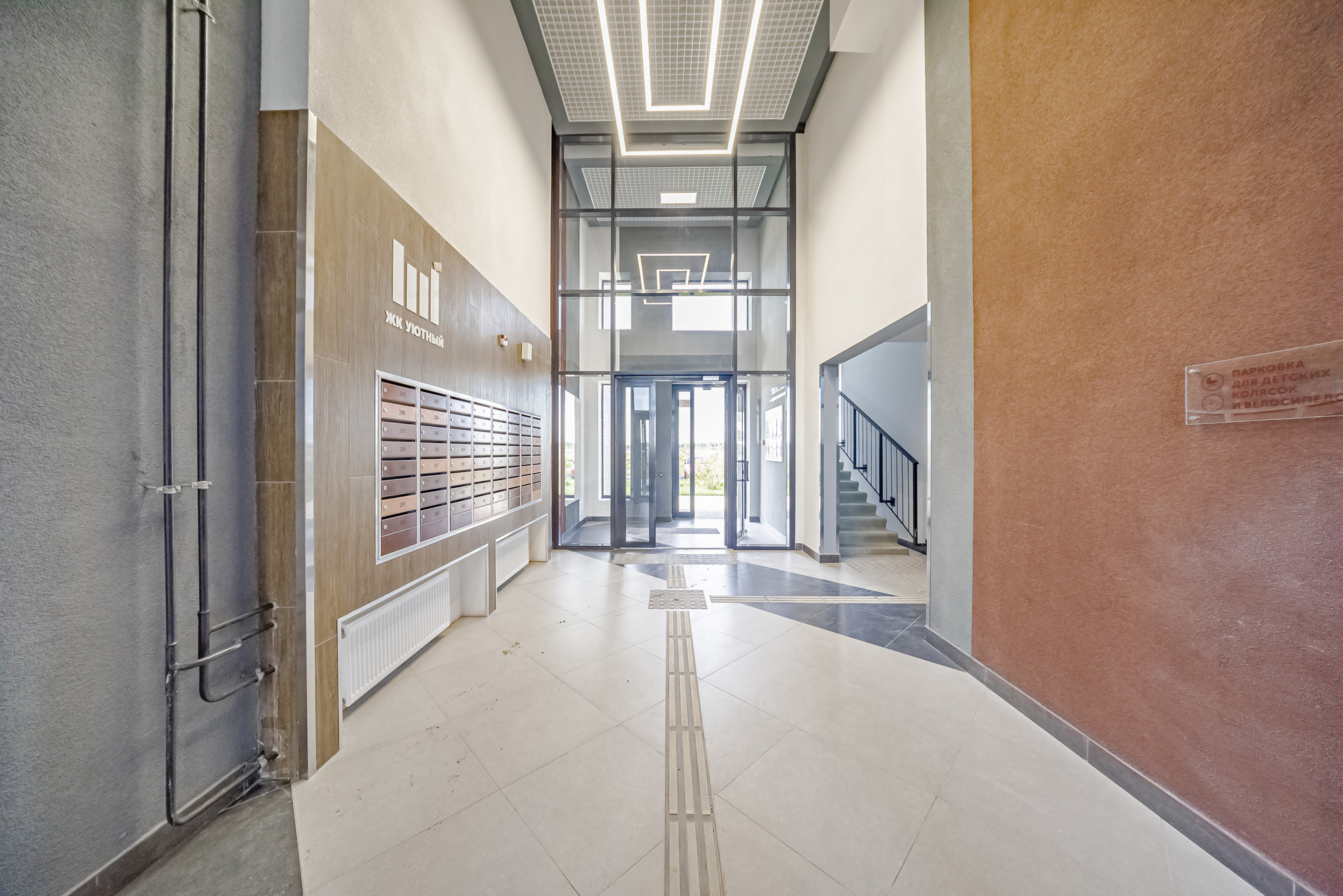 Высокие, стеклянные входные группы (видно всё и всех, когда заходите домой), так же и с лестницей (всегда светло и все видно через большие окна)