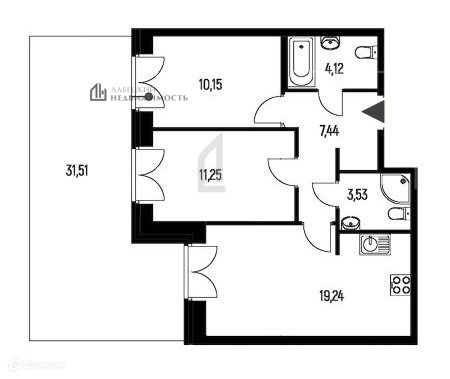 В квартире ДВА санузла (4,12 м² и 3,53 м²)!