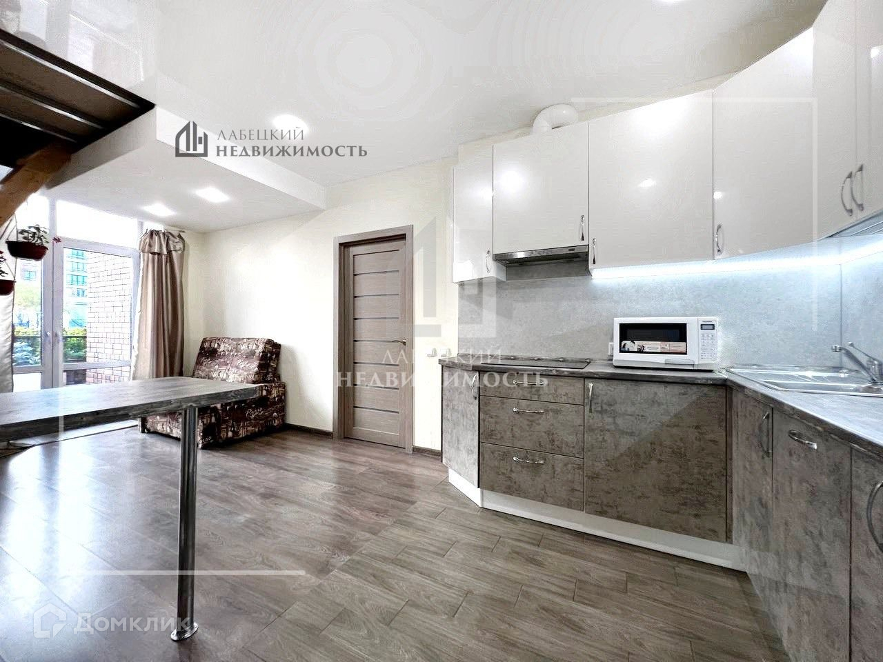 Полностью остаётся кухня, с умным зонированным освещением и НОВОЙ бытовой техникой (индукционная плита, посудомоечная машина, духовой шкаф).