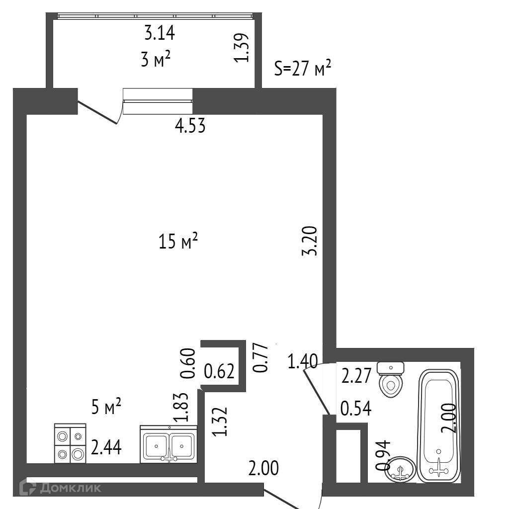 Общая площадь 27 м2