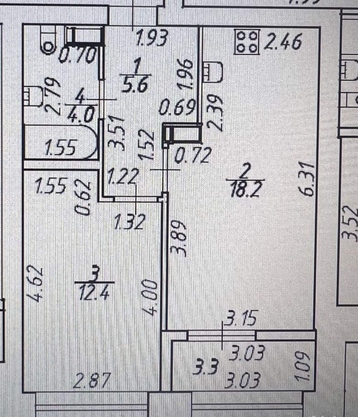 Жилая площадь 12.4 м2