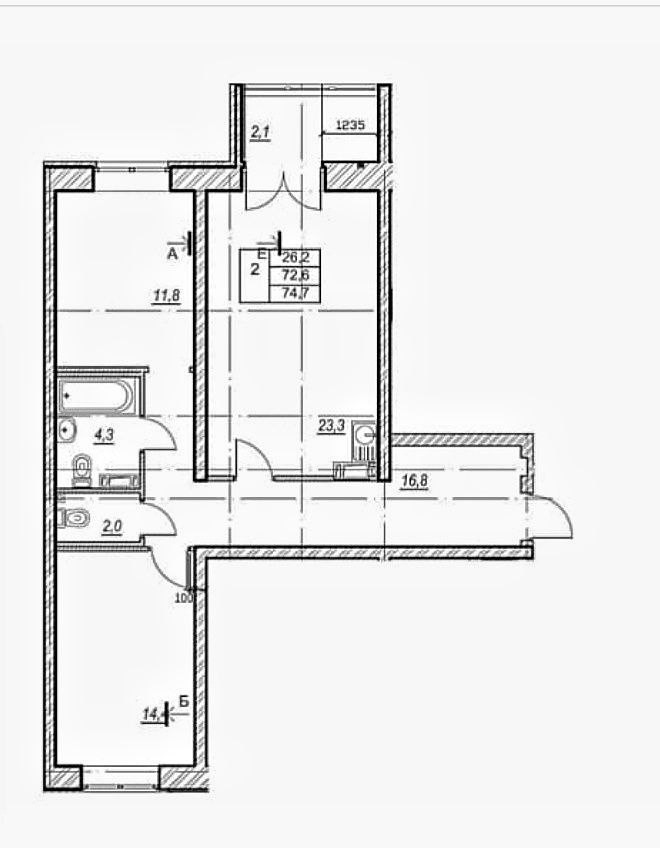 - Ванная комната 4,3 м²,