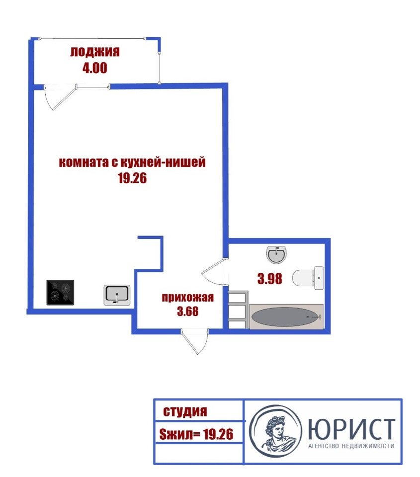 Общая площадь 27.1 м2