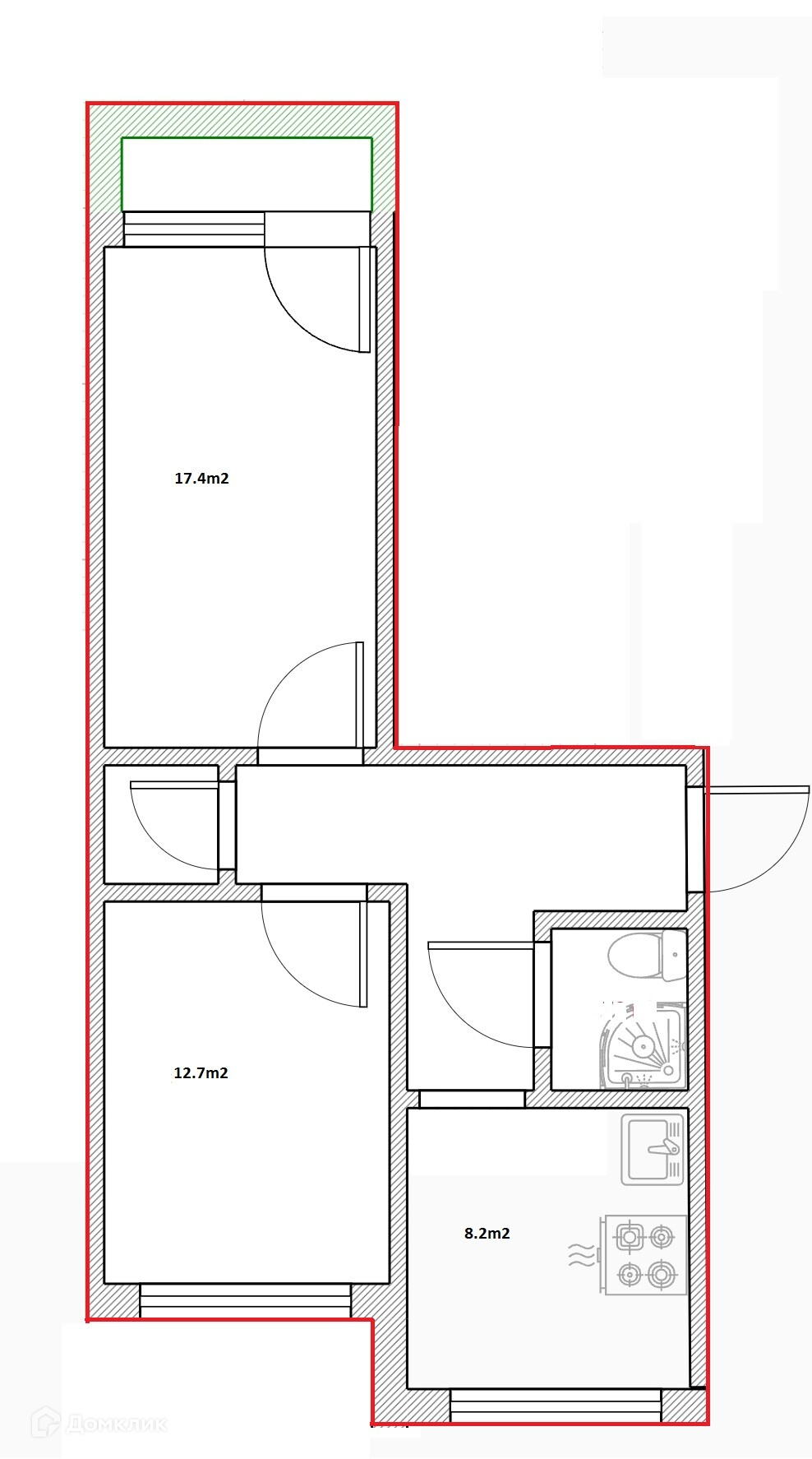 Жилая площадь 31.1 м2