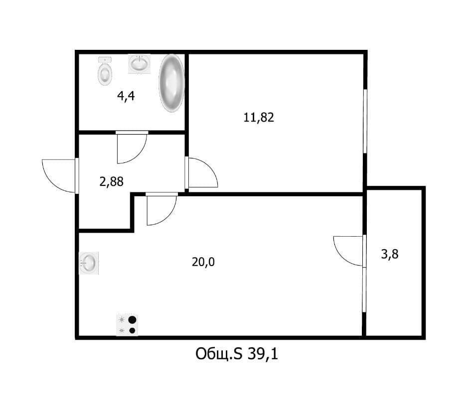 Общая площадь квартиры - 39.1 кв м + лоджия 3.8 кв м. Квартира с черновой отделкой. Большая кухня-гостиная 20 кв м с распашными окнами на лоджию. Комната - 11.82 кв м. СУ совмещенный 4.4 кв м. В коридоре в нише можно установить встроенный шкаф. Окна выходят на променад с фонтаном – никакого постороннего шума от центральных дорог, и Вы всегда сможете наблюдать гуляющего на улице ребенка. Ниже этажом под квартирой продается точно такая квартира, и вы можете объединить 2 квартиры и сделать двухуровневую квартиру. Отличный вариант для молодой семьи. Вам остается только воплотить в жизнь дизайн-проект квартиры Вашей мечты.