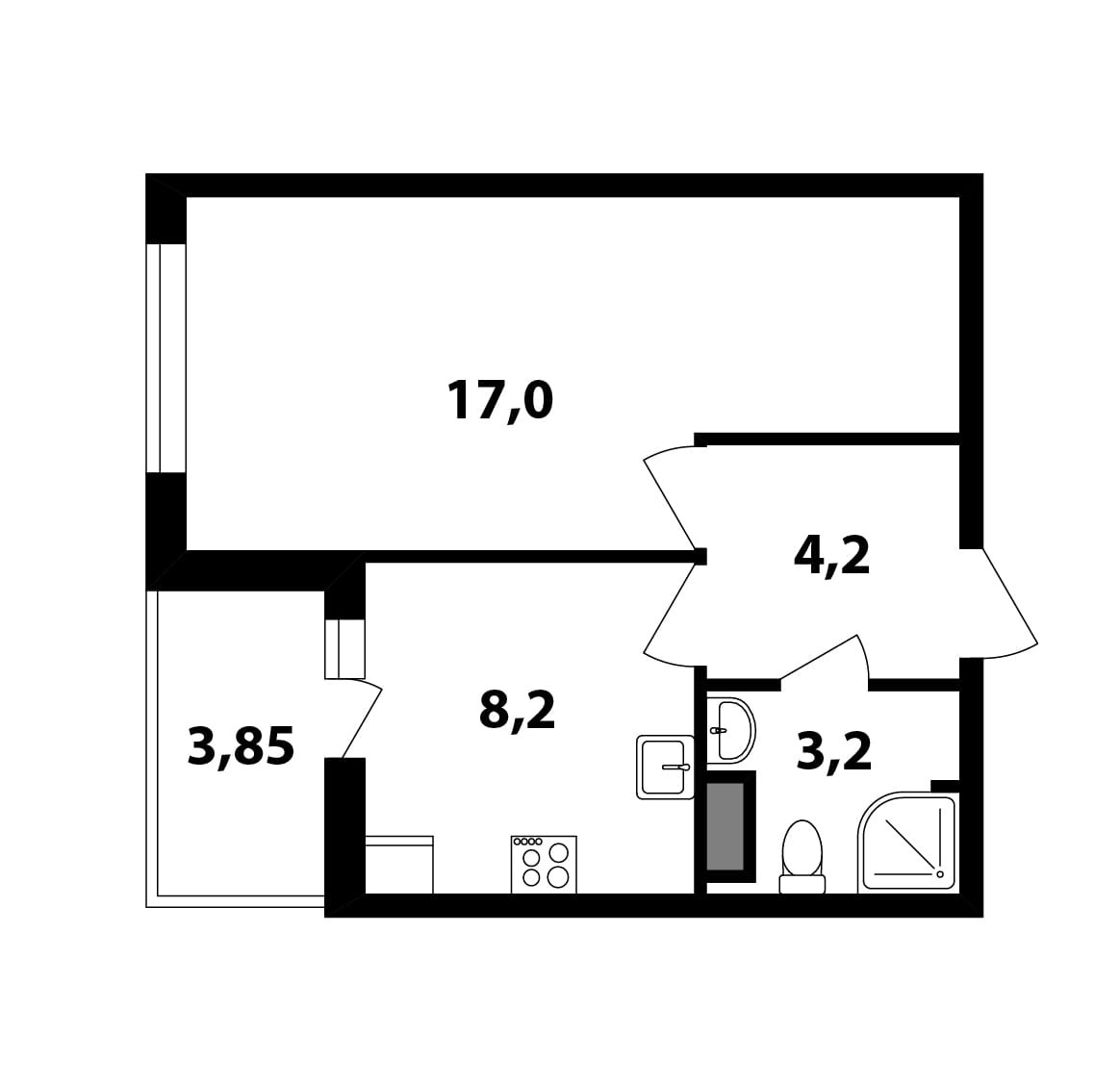 Жилая площадь 17 м2