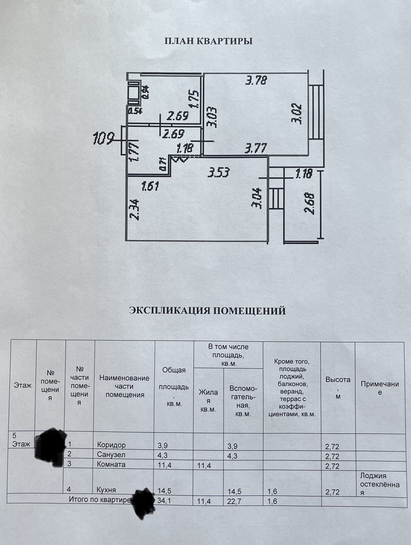 Общая площадь 34.1 м2