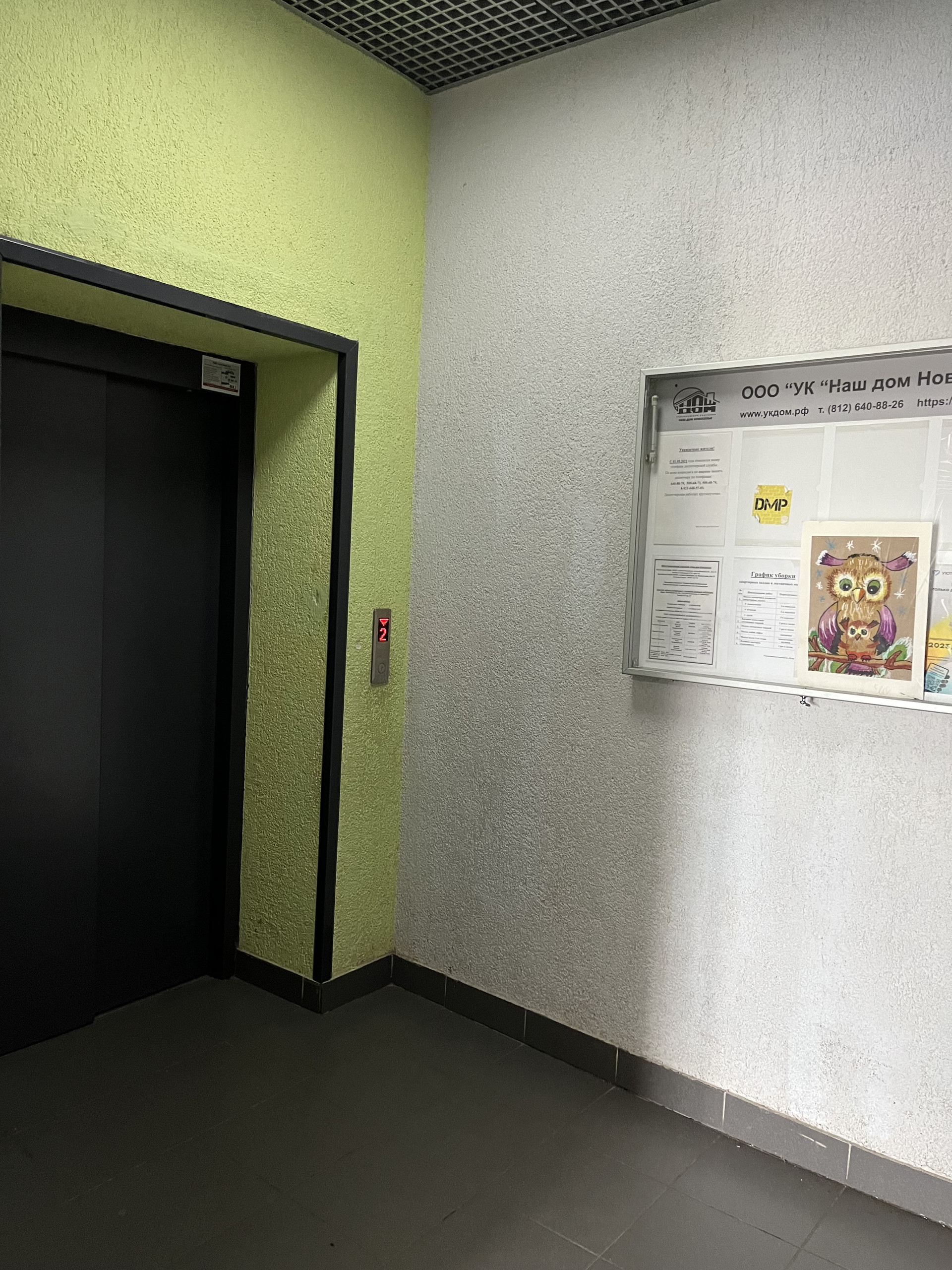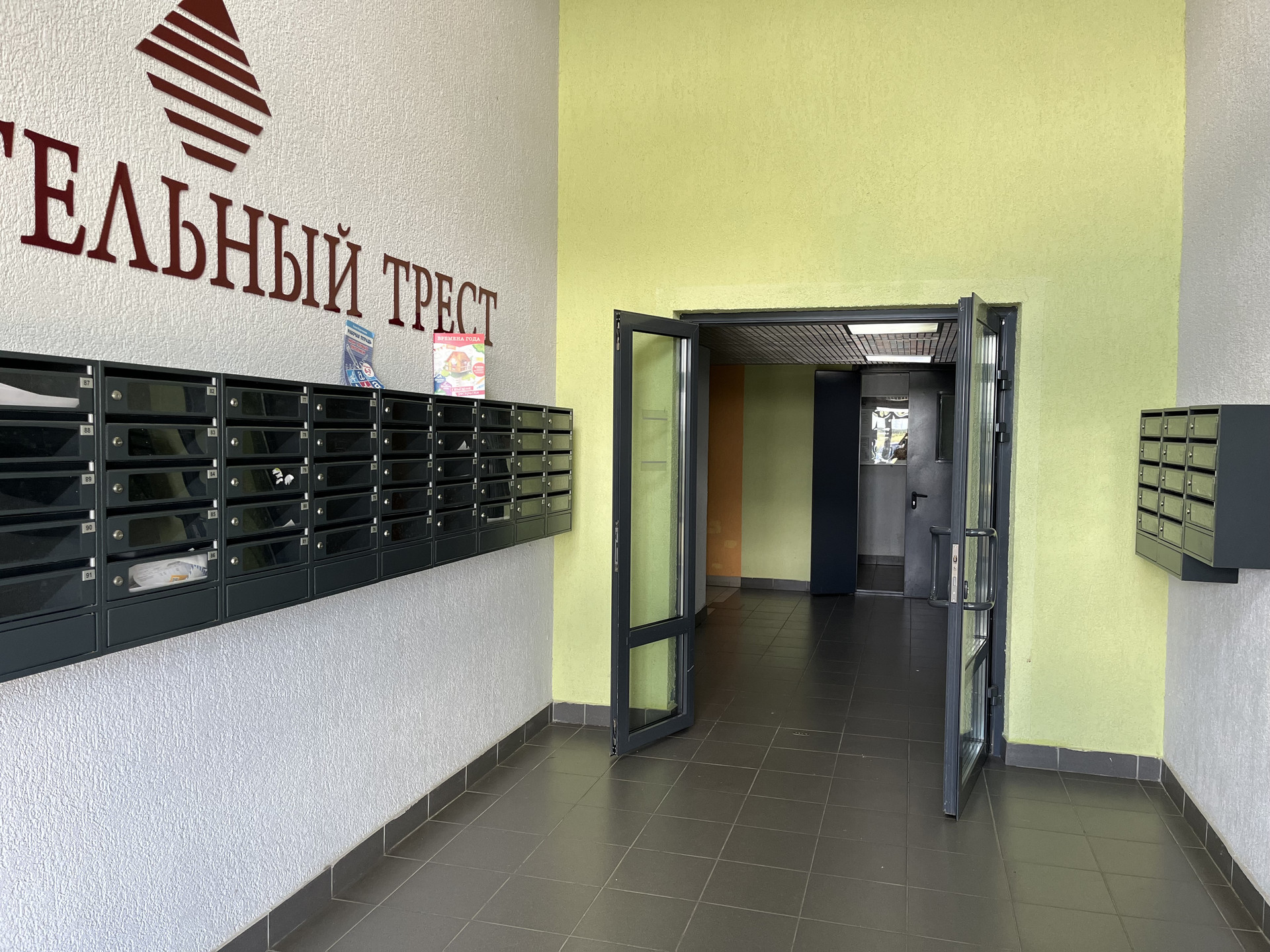 Просторная, чистая парадная с колясочной комнатой. ДМФ. Видеонаблюдение.