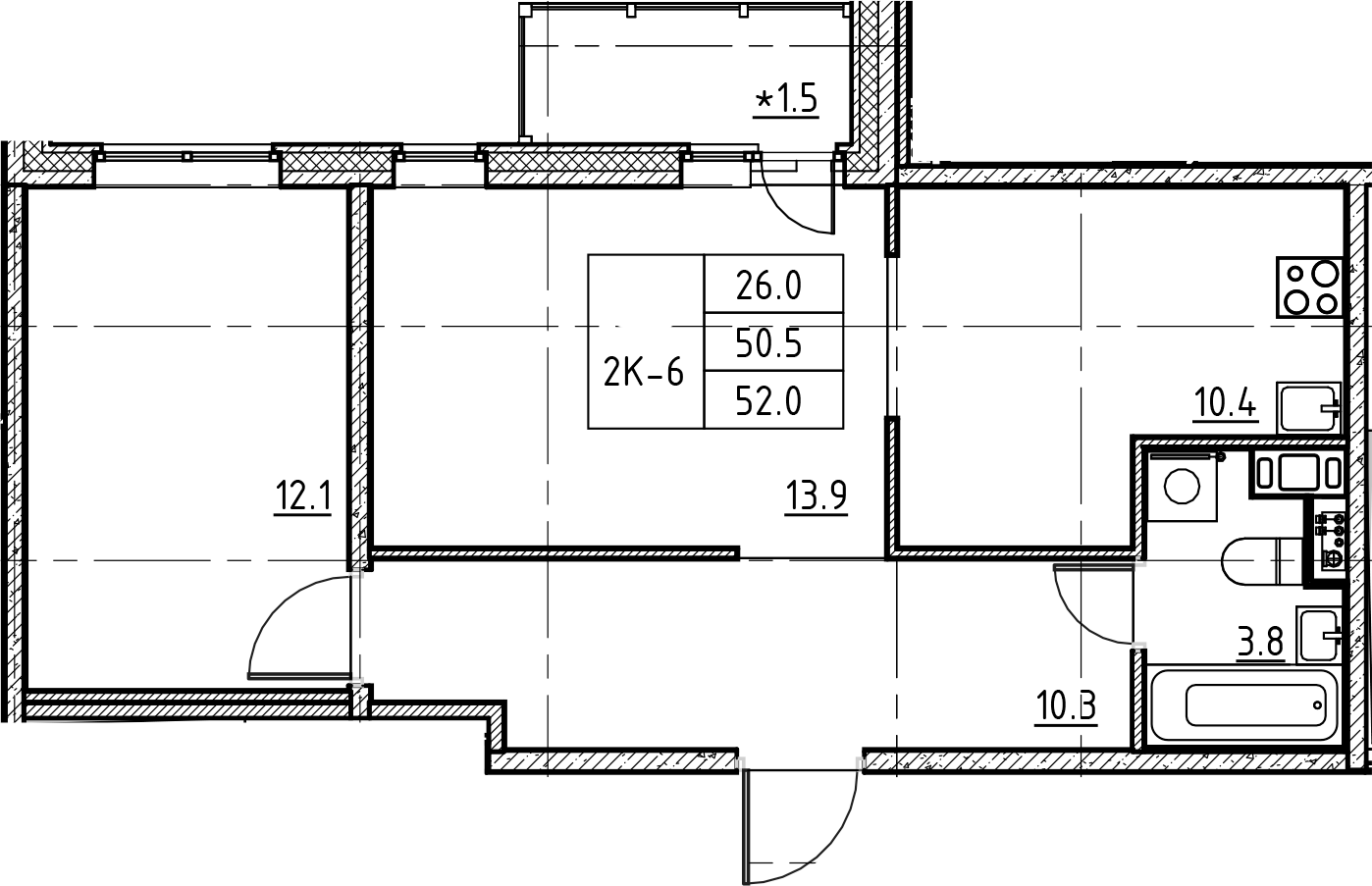 Балкон, лоджия 1 балкон